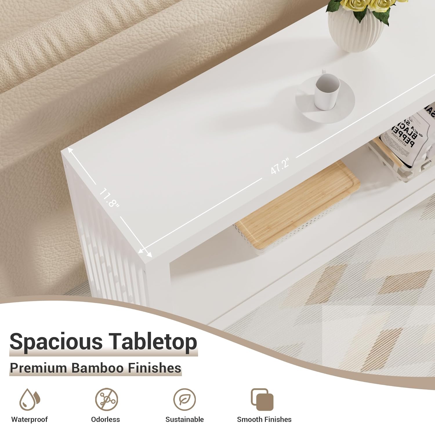 Bamboo Wood Console Table 47.2" Entryway Table, 2-Tier Farmhouse Narrow Sofa Table w/Storage Shelf, Couch Table Behind Sofa Easy Assembly for Entrance, Hallway, Living Room, Foyer(White)