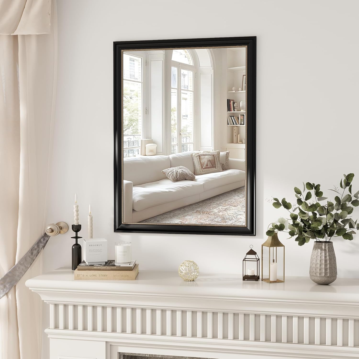 Axeman 30x40 Rectangular Wall Mirror, Decorative Bathroom Mirror, Traditional Vintage Wall Mounted Mirror with Beaded Frame for Accent Living Room Vanity Bedroom Entryway, Black