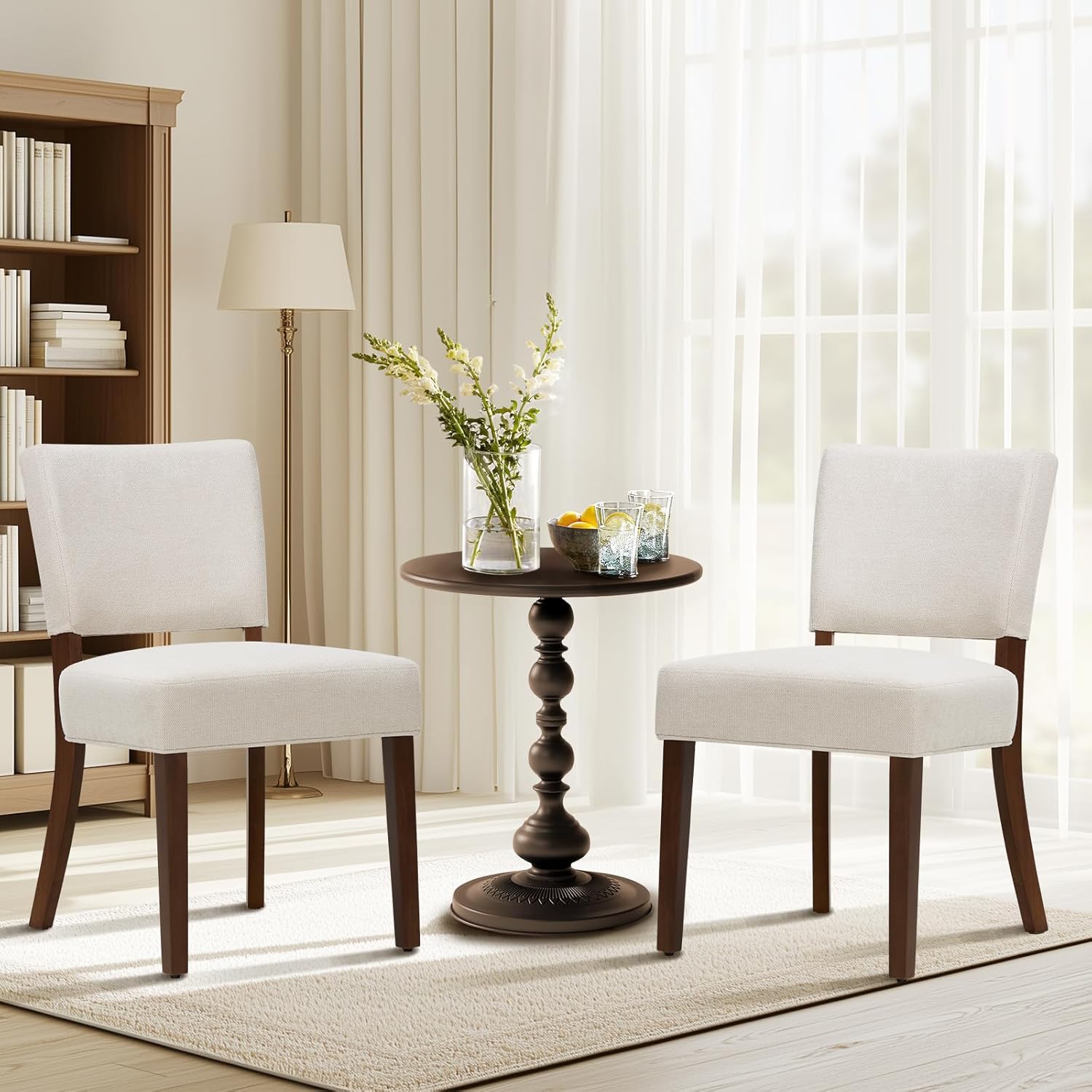 COLAMY Mid Century Modern Dining Chairs Set of 2, Upholstered Kitchen Chairs with Back, Farmhouse Fabric Side Dining Room Chairs with Wood Legs for Dining Room Kitchen Restaurant, Beige