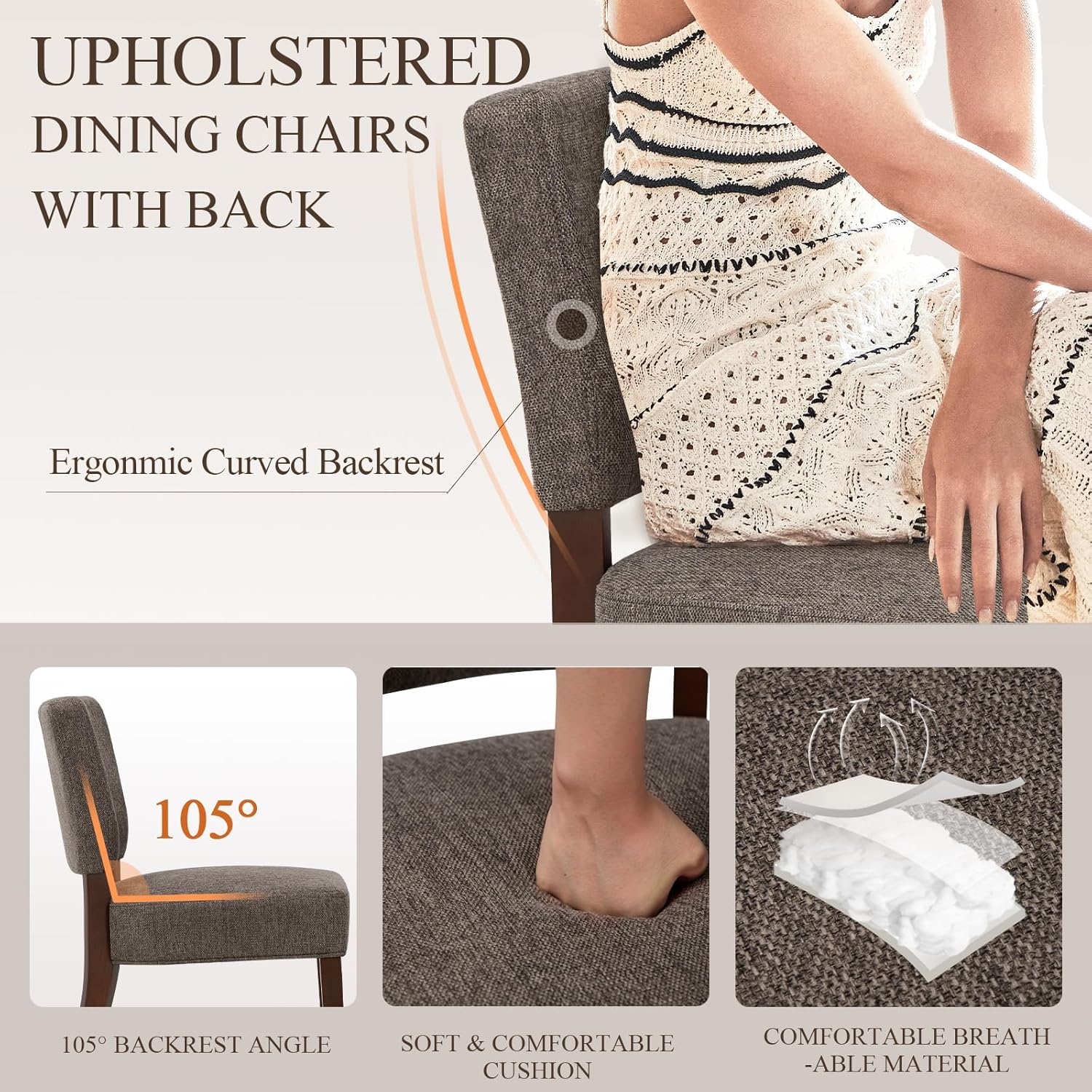 - ERGONOMIC DINING CHAIRS WITH BACK: Upholstered dining chairs are ergonomic. The padding and support provided by the soft back and cushion promote great posture and reduce the risk of back pain or discomfort. Whether you are looking for comfortable seating for dining room, living room, office space, bistro, or farmhouse, our comfy accent dining chairs are the great choice,with their combination of style, comfort, and versatility.