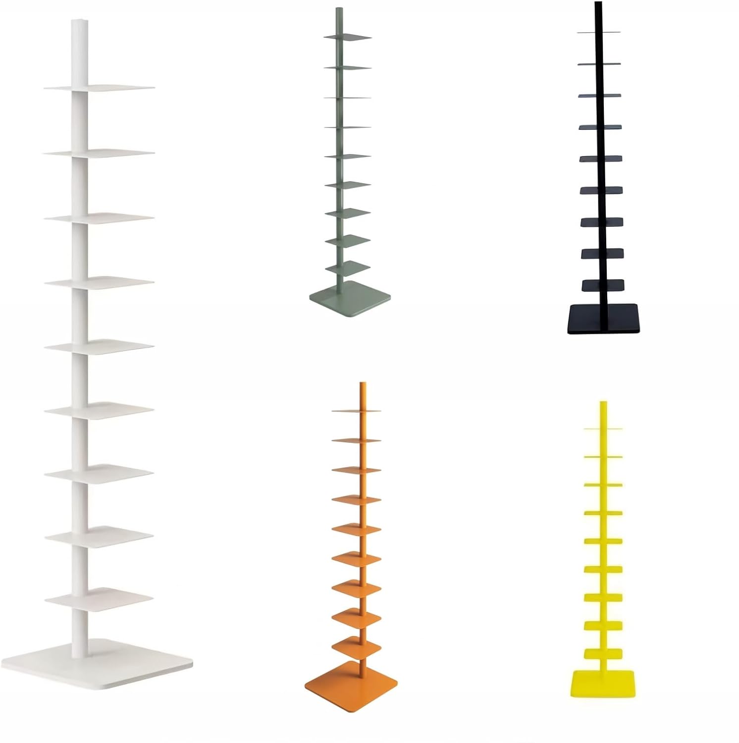 - EASY INSTALLATION: The vertical bookshelf tower is extremely simple to install without any tools. After you open the package, install it from bottom to top, and you can rotate the angle at will, allowing you to experience the fun of DIY to the fullest.