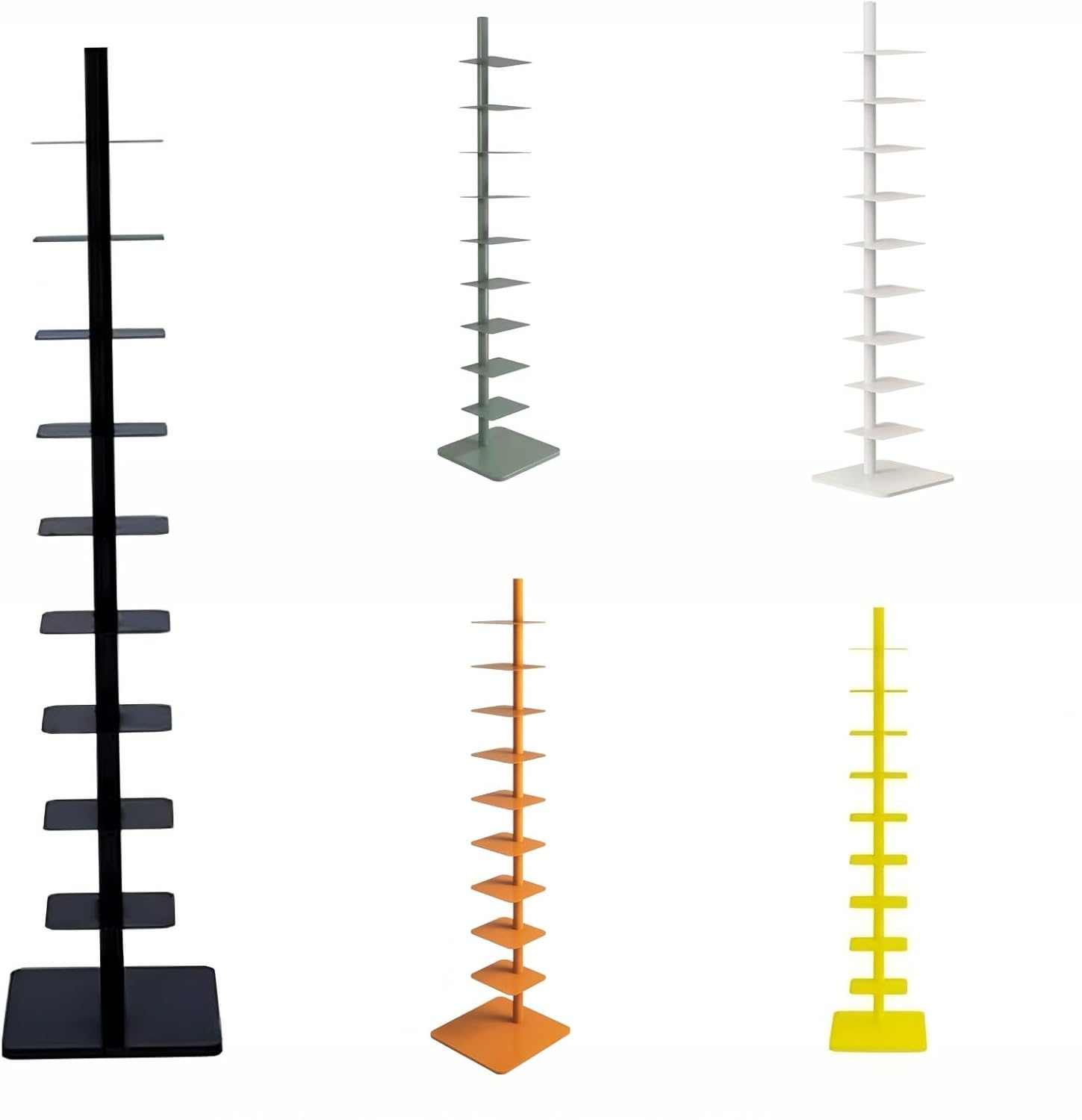 9-Tier Spine Bookshelf Metal Bookcase 5 Colors Vertical Bookshelf Tower Rotating Tall Narrow Bookshelf Ladder Book Rack Indoor (Black)