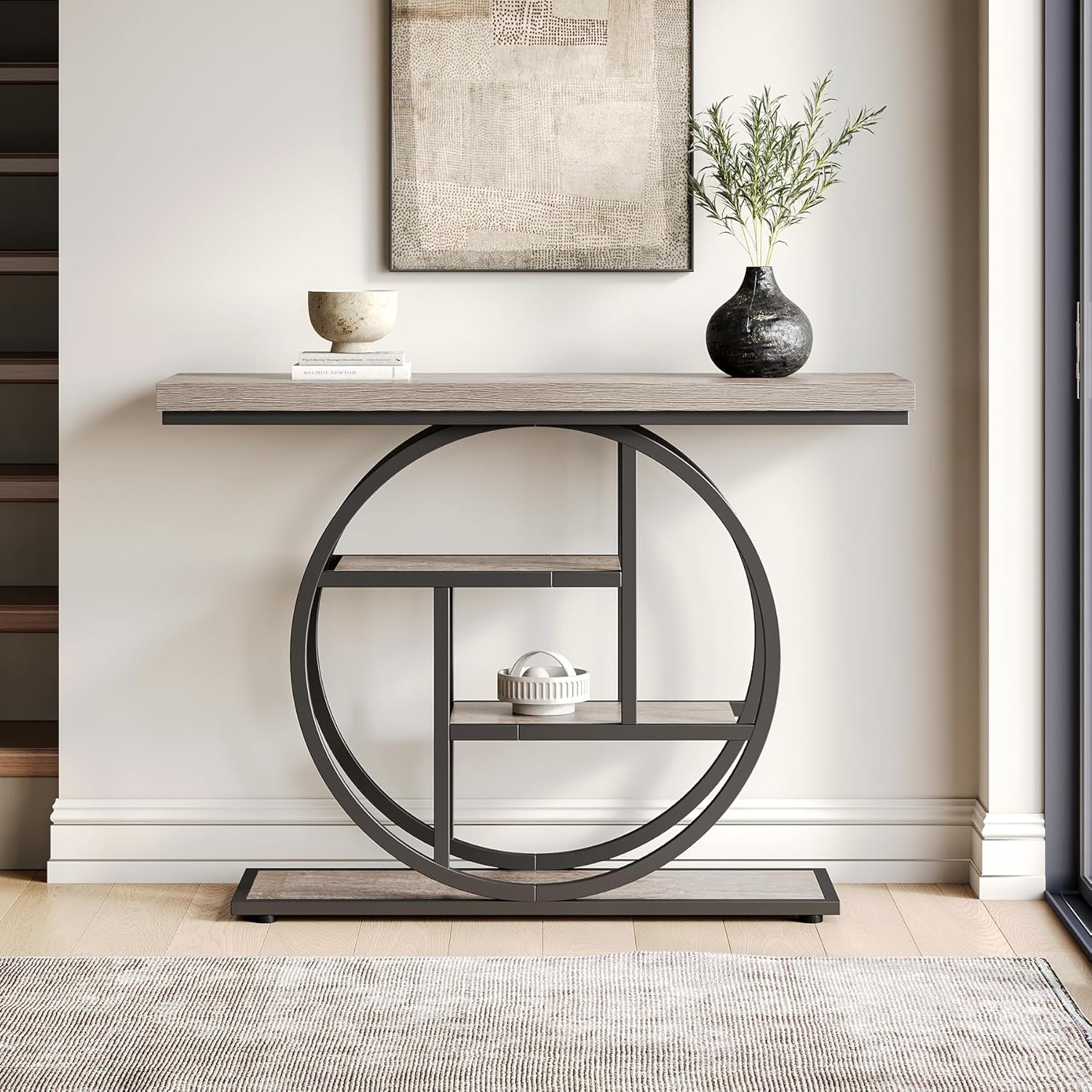 - Reliable Construction: Sturdily built with a black industrial frame, this 4-tier entryway table promises long-lasting use and stability, withstanding years of use.