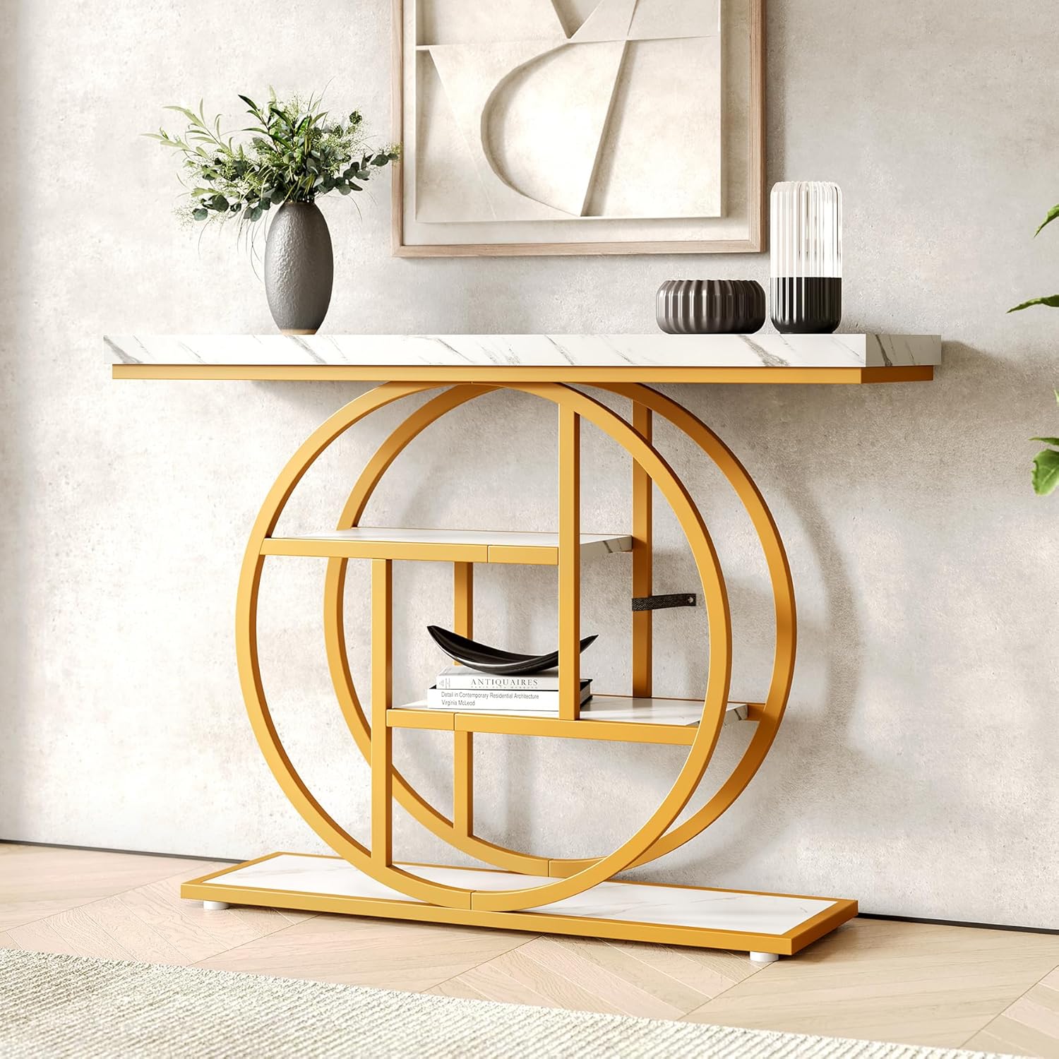 LITTLE TREE Console Table, 4-Tier Entryway Table Behind Couch Table, 41.3-Inch Modern Sofa Table for Living Room, Foyer Hallway Table for Entrance, White and Gold