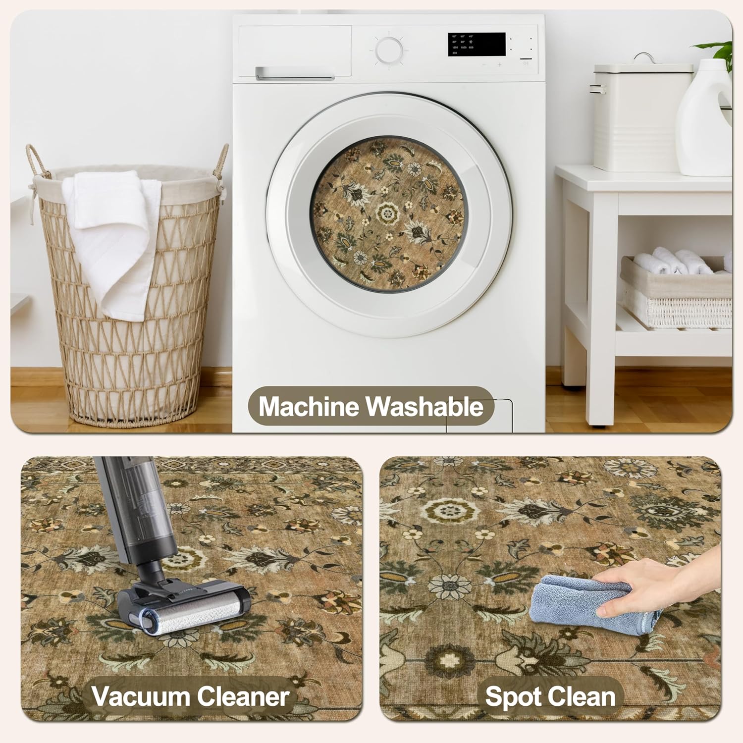 - 【Non-Slip Backing】Experience peace of mind with every step on our vintage area rug, featuring an innovative TPE non-slip rubber backing. Designed to keep your carpet securely anchored, it effortlessly holds its ground against movement and slippage. Provides safety and stability for high-traffic areas such as entrances or front doors, reducing the likelihood of people and pets slipping, making it easy to walk and play