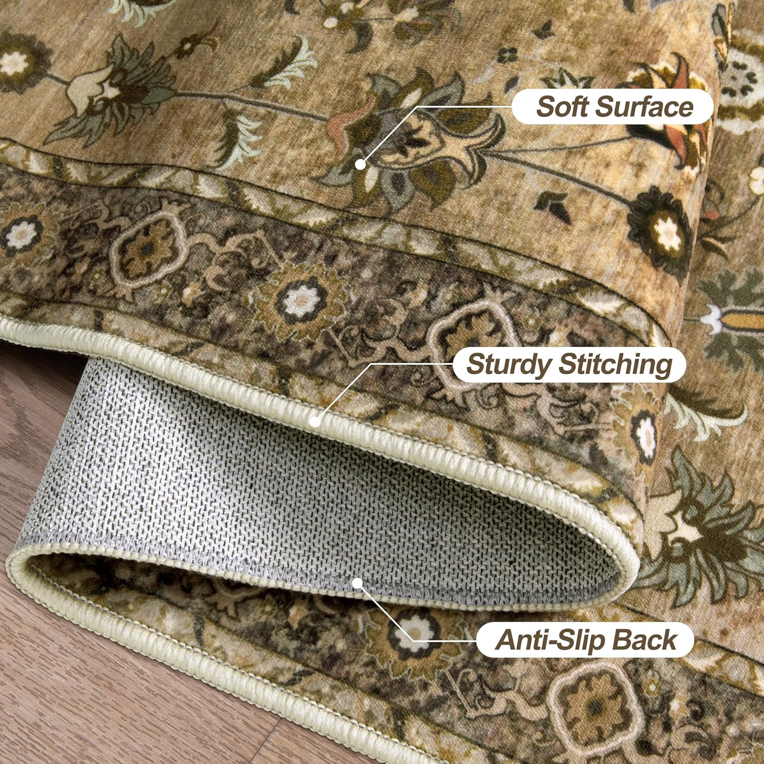 - 【Non-Slip Backing】Experience peace of mind with every step on our vintage area rug, featuring an innovative TPE non-slip rubber backing. Designed to keep your carpet securely anchored, it effortlessly holds its ground against movement and slippage. Provides safety and stability for high-traffic areas such as entrances or front doors, reducing the likelihood of people and pets slipping, making it easy to walk and play