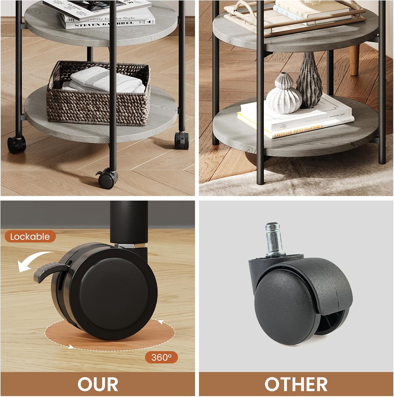End Tables Living Room, 3-Tier Modern End Table with Wheels, Small Side Table Nightstand Bedside Table for Living Room, Bedroom, or Small Spaces-Gray