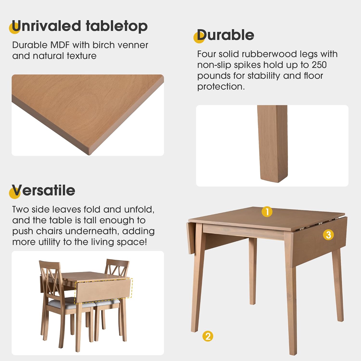 - 【Extendable Dining Table】The dining table comes with two 8-inch leaves that can extend from 27.9” x 29.5” to 45.67” x 29.5” accommodating more guests as needed. When not in use, the foldable leaves and chairs can be stored compactly under the table, maximizing space efficiency.