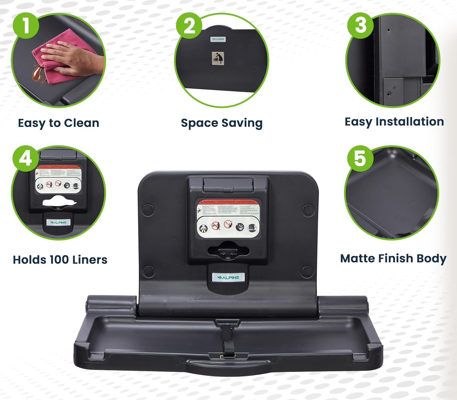 - With two side bag hooks, the Alpine baby changing station provides wide storage space and makes it easy for parents to keep their belongings within reach while changing their baby. We are confident you'll love it!