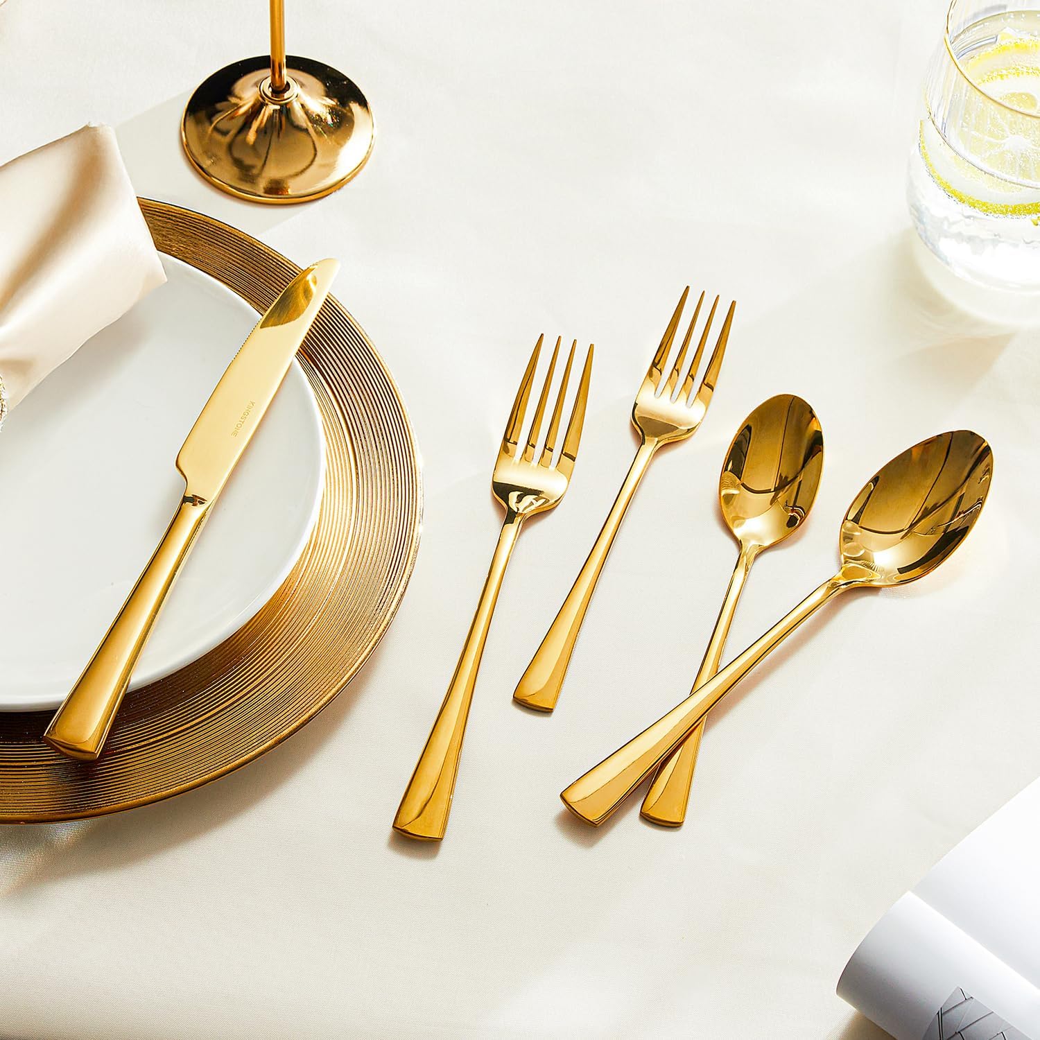 KINGSTONE Silverware Set for 8, 40-Piece Forged 18/10 Stainless Steel Flatware Set, Mirror Finish Cutlery Set Dishwasher Safe for Home, Restaurant, Wedding, Party,Gold