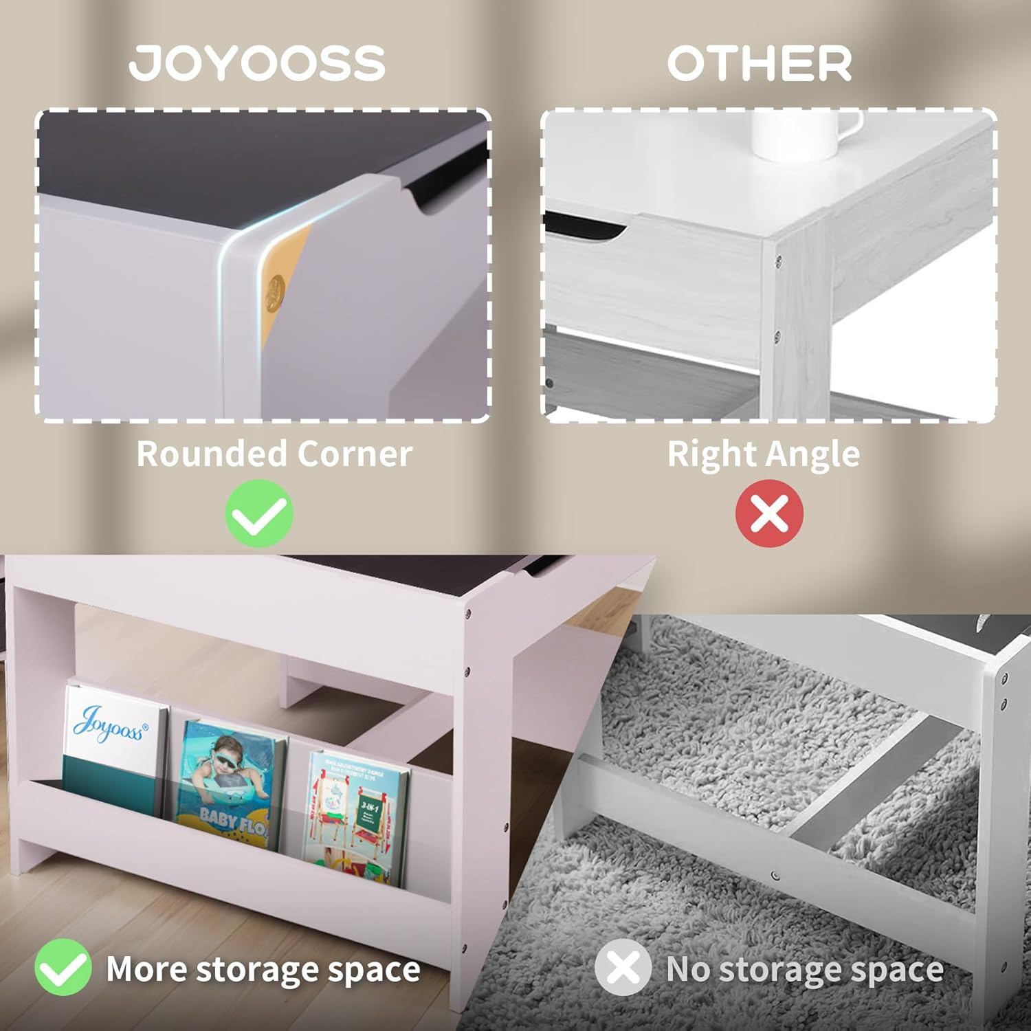 Joyooss Kids Table and Chair Set,4 in 1 Wooden Kids Table and Chairs Ages 3-7,Toddler Table with Storage Kid Desk and Chair Set for Toddlers 2 in 1 Tabletop