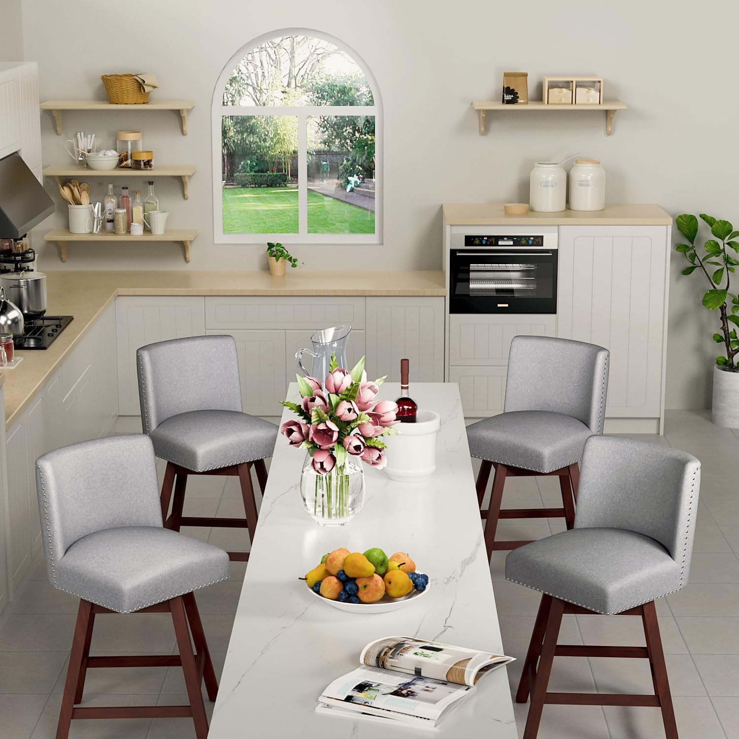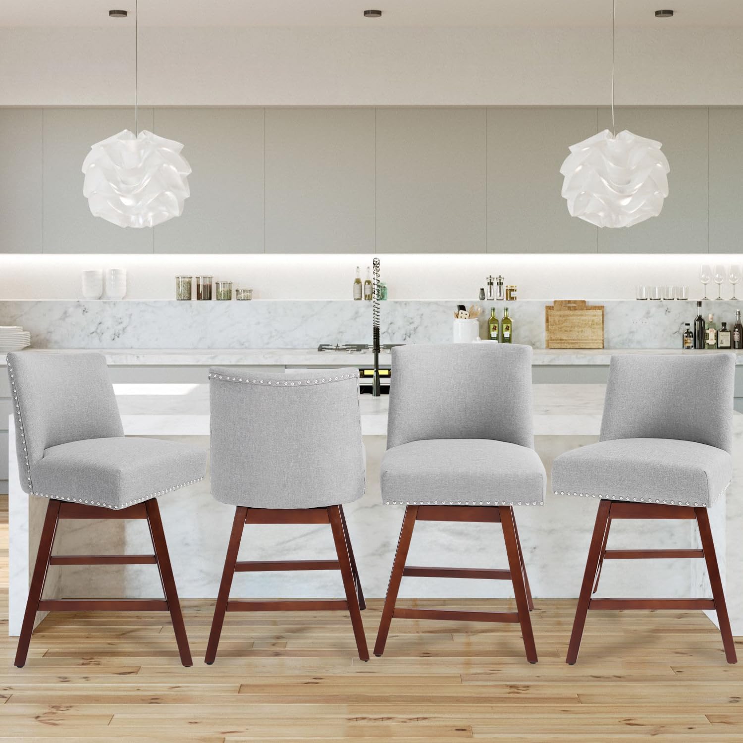 Counter Height Barstools Set of 4,360° Swivel Bar Stools with Back,26 inch Modern Counter barstools,Upholstered Bar Tall Stools for Kitchen Counter,Kitchen Island,Bar, Home (Light Gray, SET OF 4)