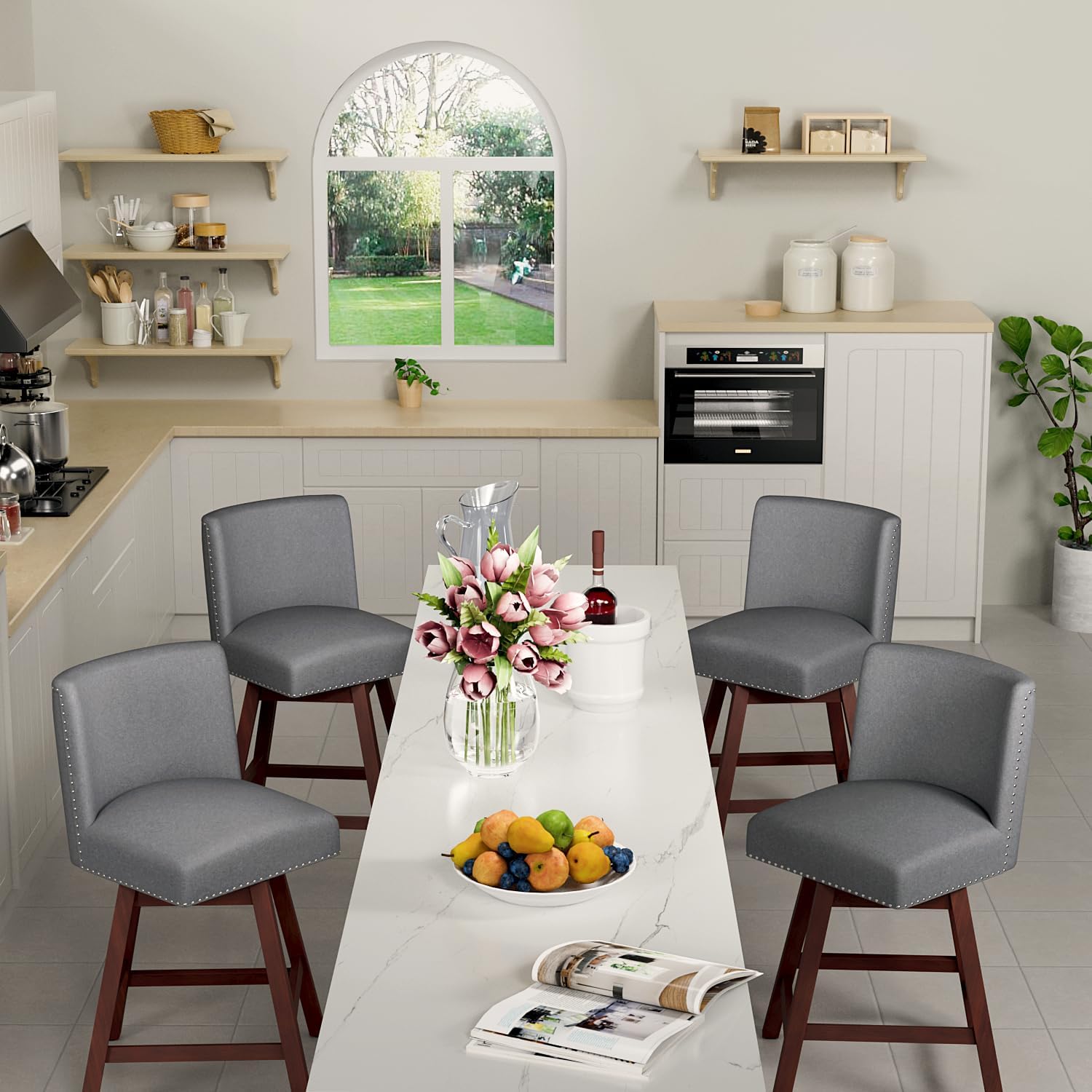 Counter Height Barstools Set of 4,360° Swivel Bar Stools with Back,26 inch Modern Counter barstools,Upholstered Bar Tall Stools for Kitchen Counter,Kitchen Island,Bar, Home (Dark Gray, SET OF 4)