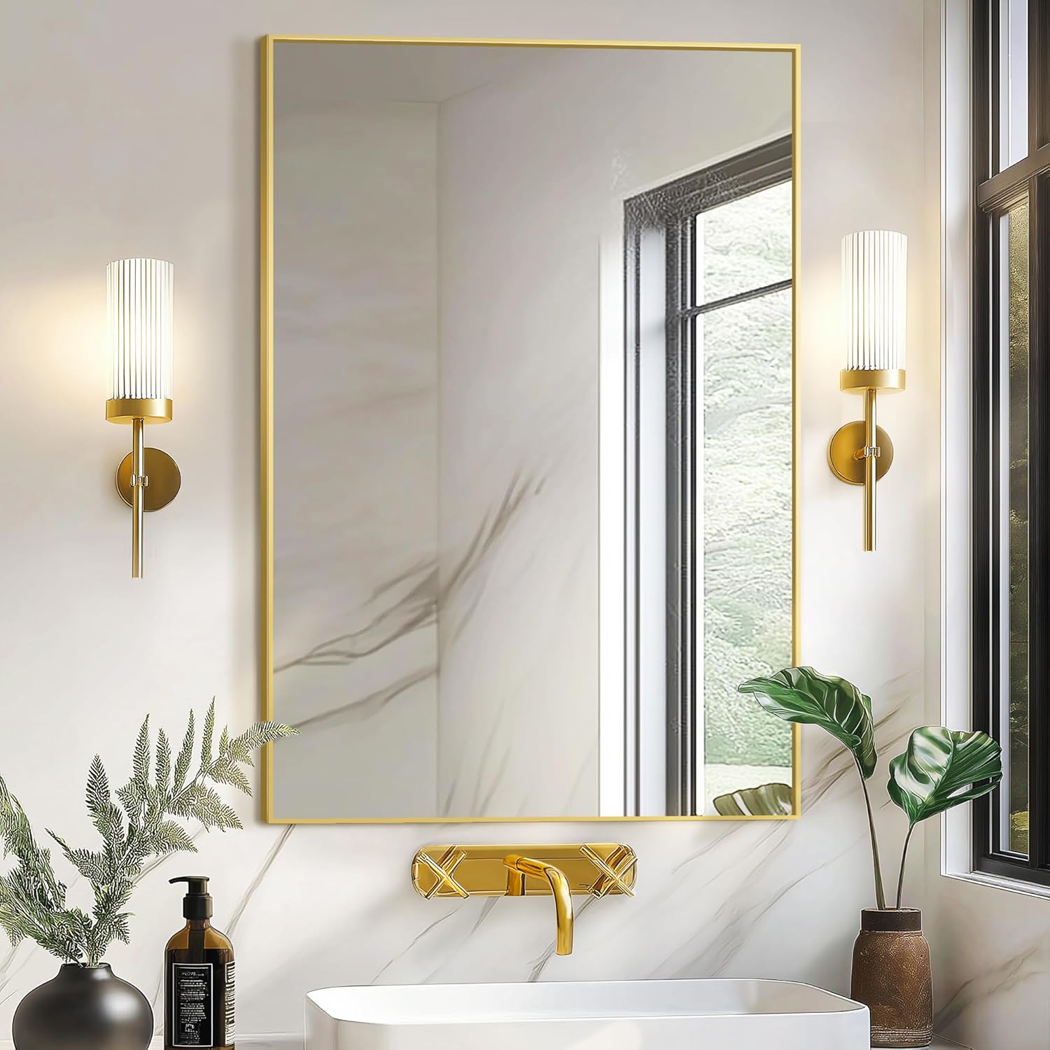 Bathroom Vanity Mirror for Wall, 36" x 24" Metal Framed Rectangular Bathroom Wall Mirror for Over Sink, HD Shatterproof Glass, Hangs Horizontally or Vertically(Gold)