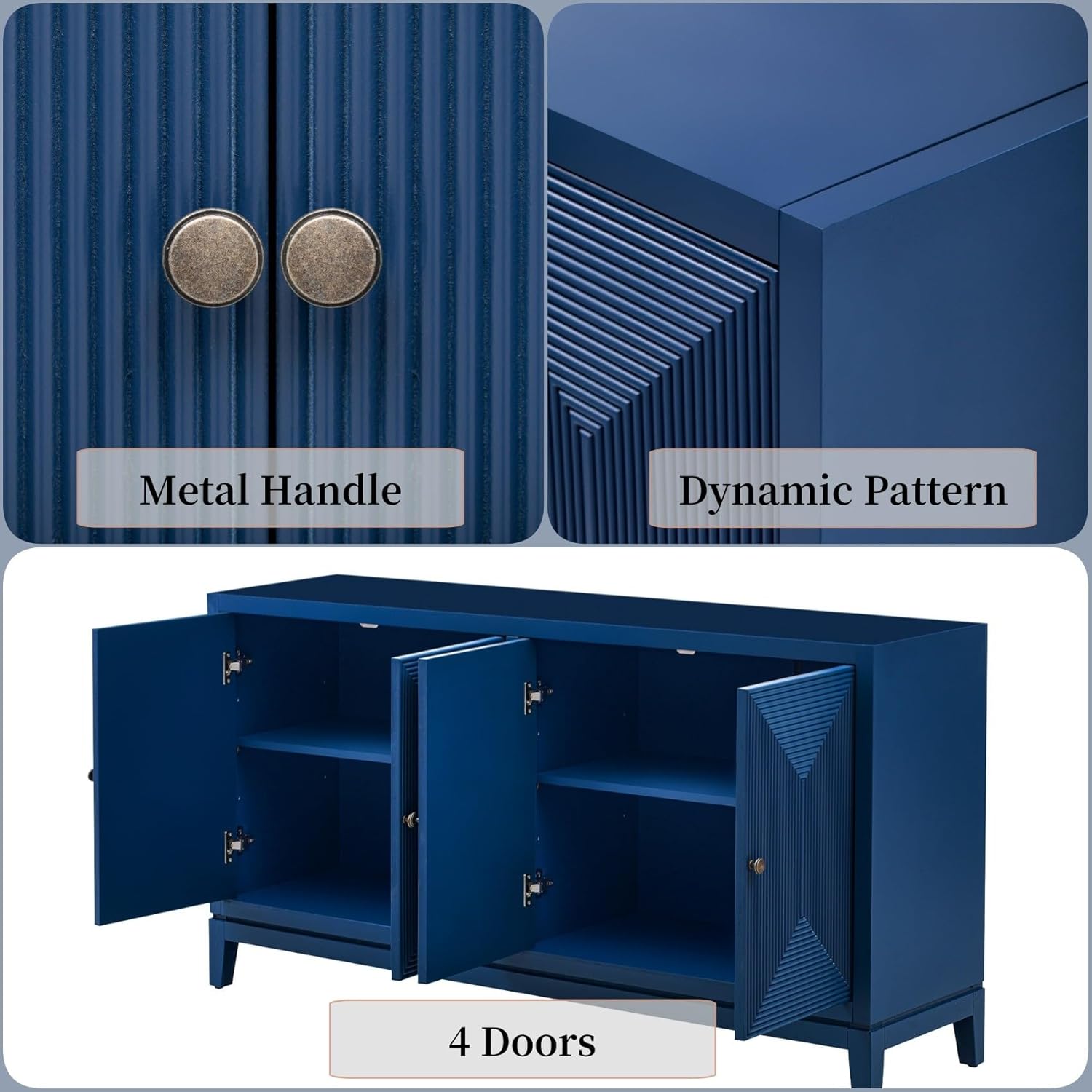 Merax 60" Sideboard Buffet Storage Cabinet with 4 Doors and Adjustable Shelves, Modern Wooden Accent Fluted Credenza Console Table for Kitchen, Dining, Living Room, Coffee Bar, Entryway, Navy Blue