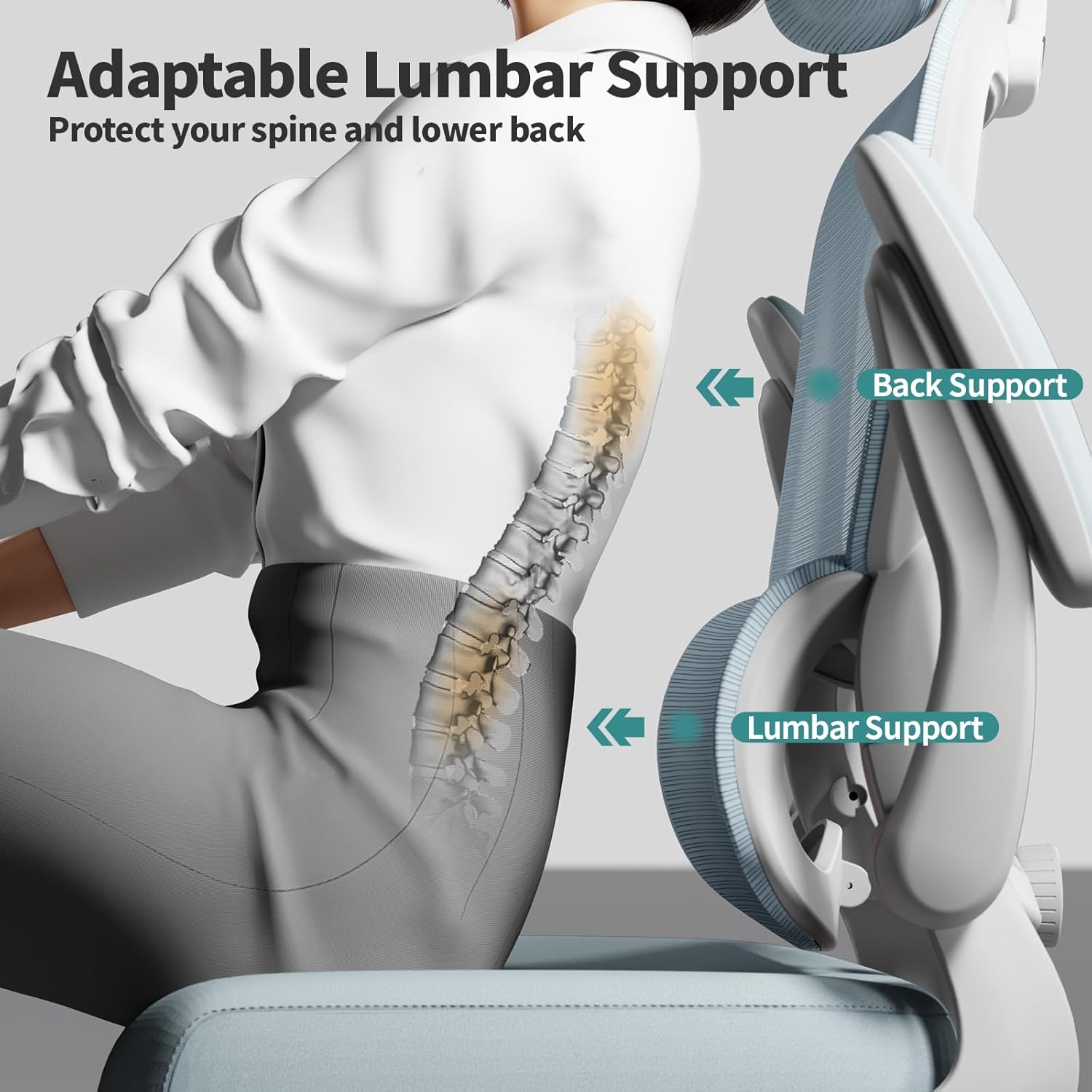 TRALT Office Chair Ergonomic Desk Chair, 330 LBS Home Mesh Office Desk Chairs with Wheels, Comfortable Gaming Chair, High Back Office Chair for Long Hours (Blue)