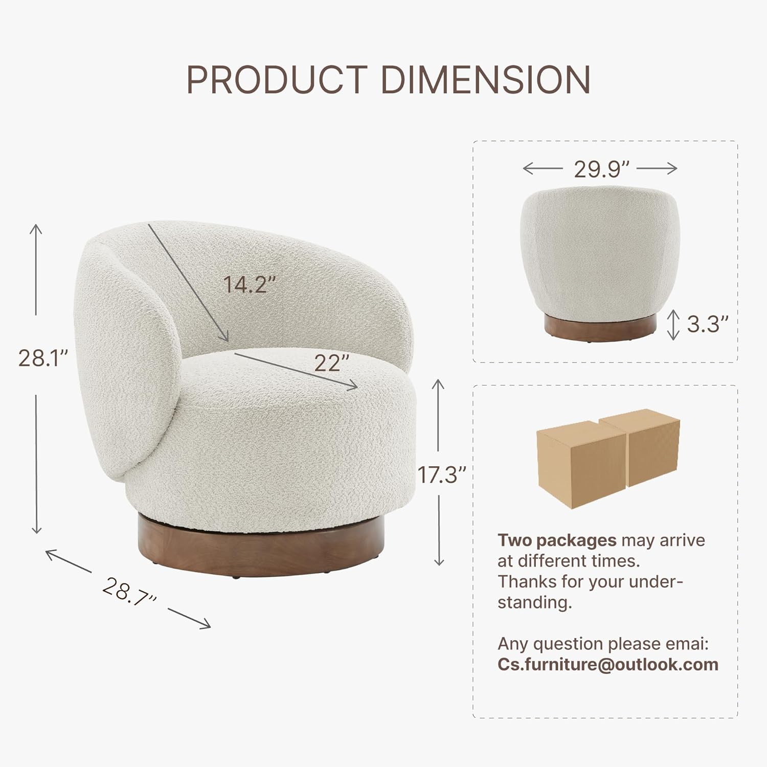- ✅ EASY TO ASSEMBLE: This barrel chair is easy to make and can be assembled in 15 minutes or less. Swivel armchair overall size: 29.92"W x 28.74"D x 28.15"H. Seat size: 22.44"W x 22.44"D x 17.32”H. Weight Capacity:300lbs.