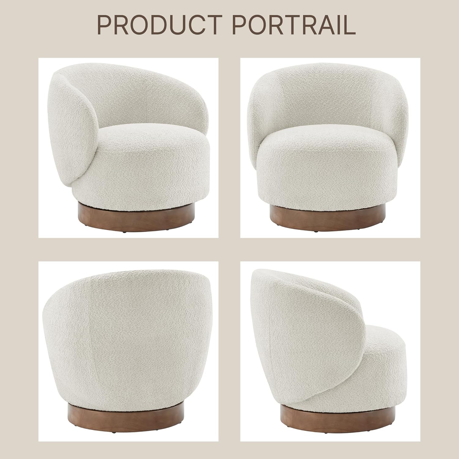 Swivel Accent Chair Round Barrel Armchair Upholstered Performance Fabric for Living Room Bedroom Waitingroom,2 Box,Cream