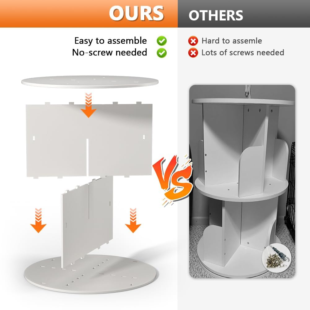 - 360° Rotation for Easy Access: Enjoy effortless access to all your books and belongings with the unique 360° rotating design. Simply spin the bookshelf to reach items from any side, making organization and storage a breeze.