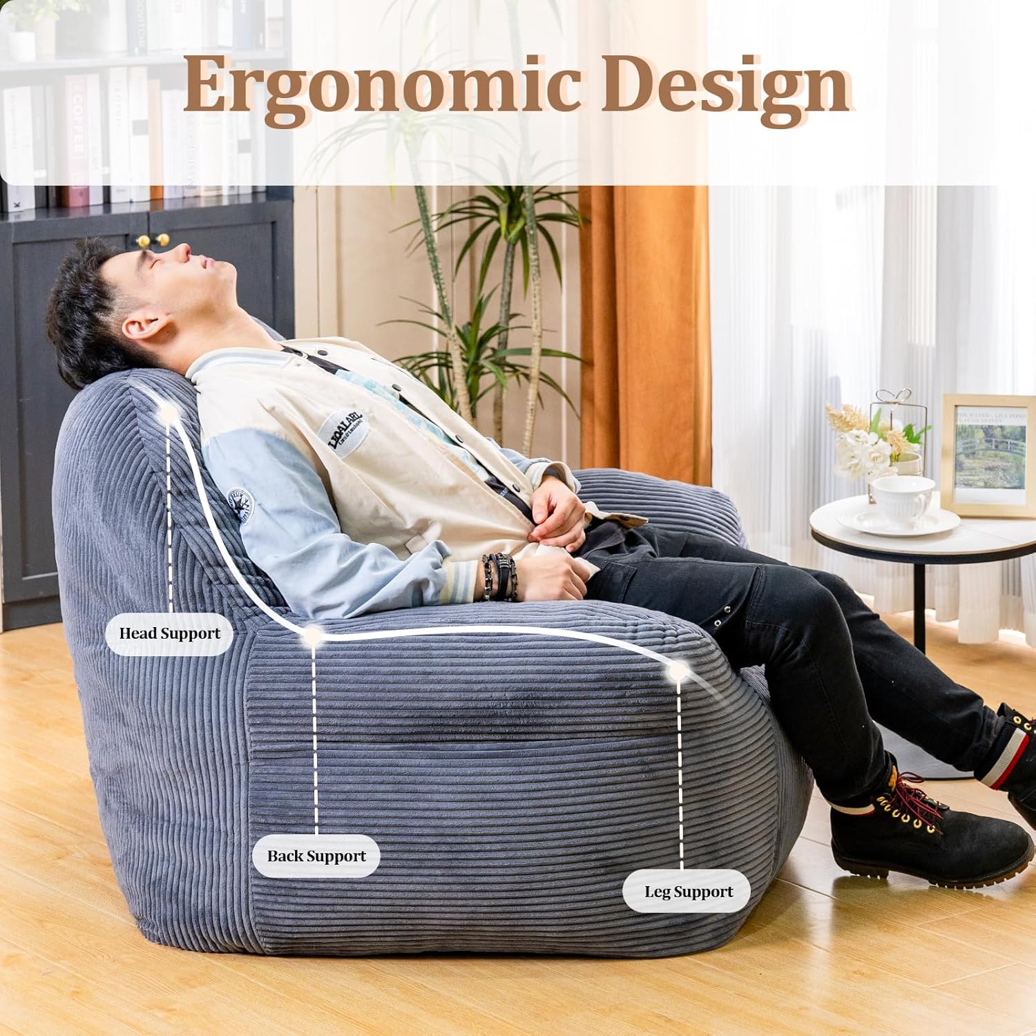 - Quality Filling Bean Bag chair:This bean bag chair is filled entirely with high quality, high density, high resilience memory foam. The bean bag chair gives reliable support, offering a comfortable sitting experience. Foam bean bag chairs are extremely durable and retain their shape over extended periods of use.