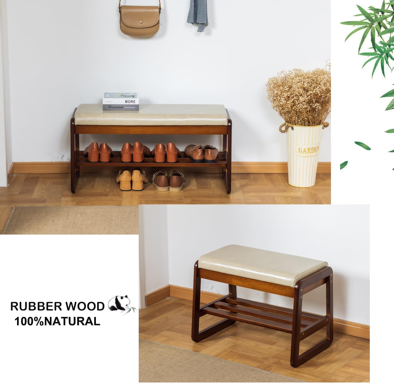 - Premium Solid Wood Construction:Crafted from 100% natural rubberwood with dense wood grain, this entryway bench ensures exceptional durability. The scratch-resistant surface and minimalist wood texture enhance decorative versatility for modern interiors.