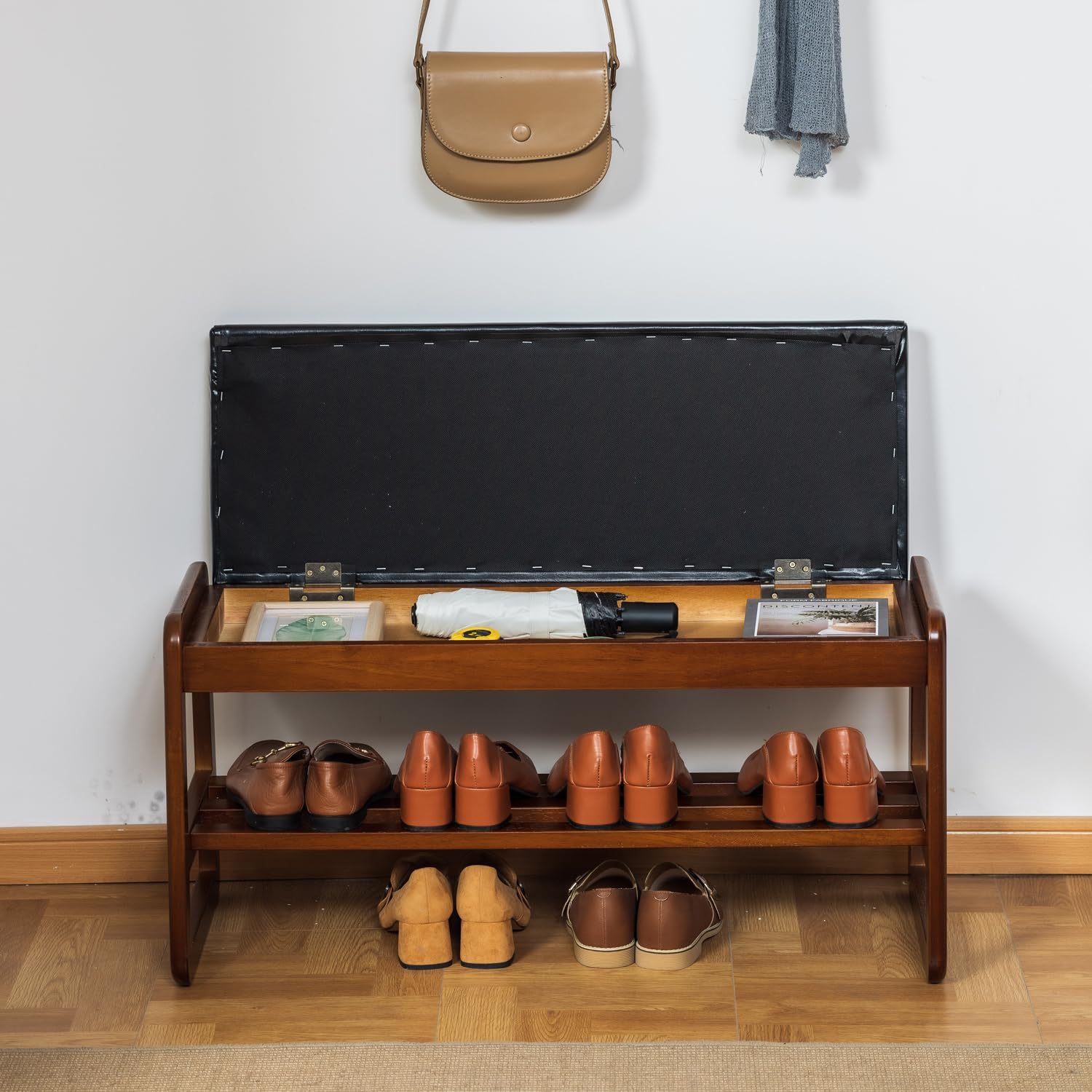 latifolia Shoe Rack Bench, Entryway Shoe Bench with Cushion, Flip-Open Storage Compartment, 2-Tier Shoe Organizer(Black,31.50''L)