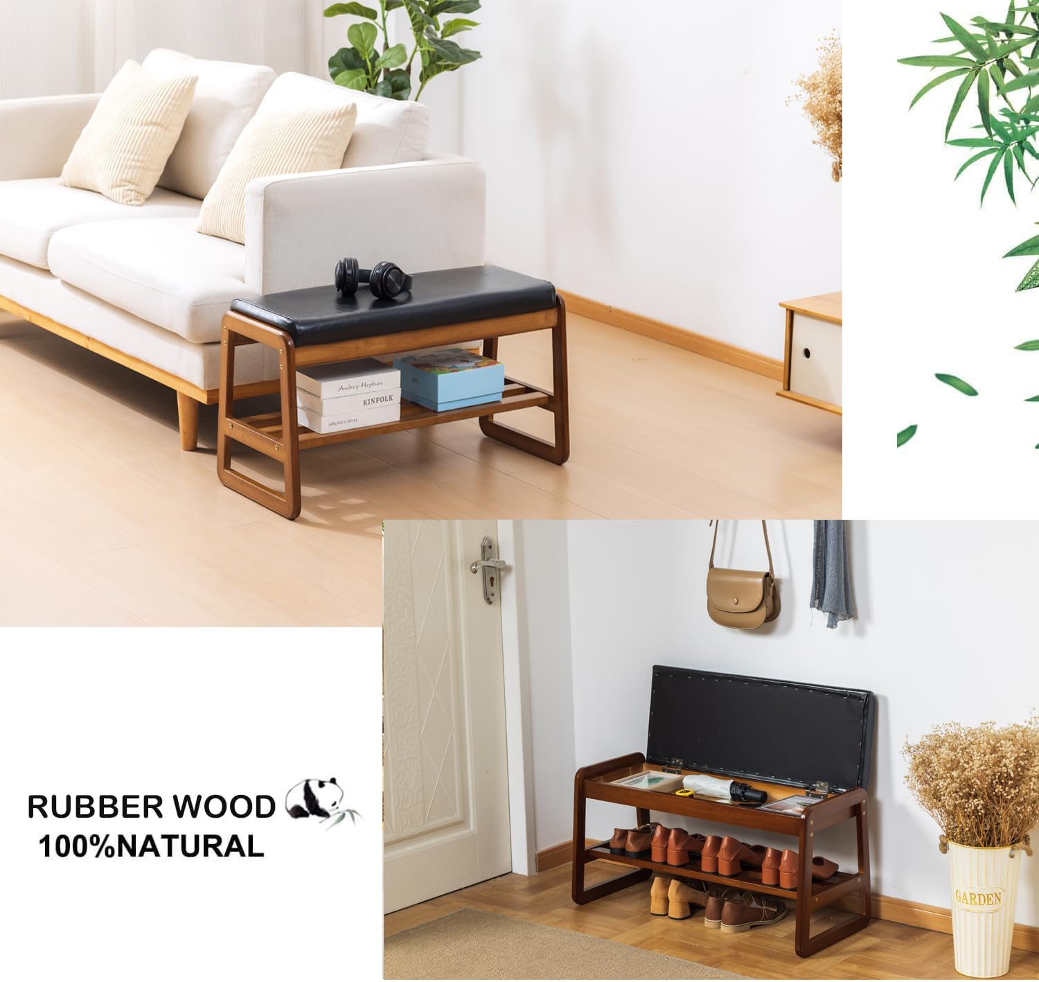 - Premium Solid Wood Construction:Crafted from 100% natural rubberwood with dense wood grain, this entryway bench ensures exceptional durability. The scratch-resistant surface and minimalist wood texture enhance decorative versatility for modern interiors.