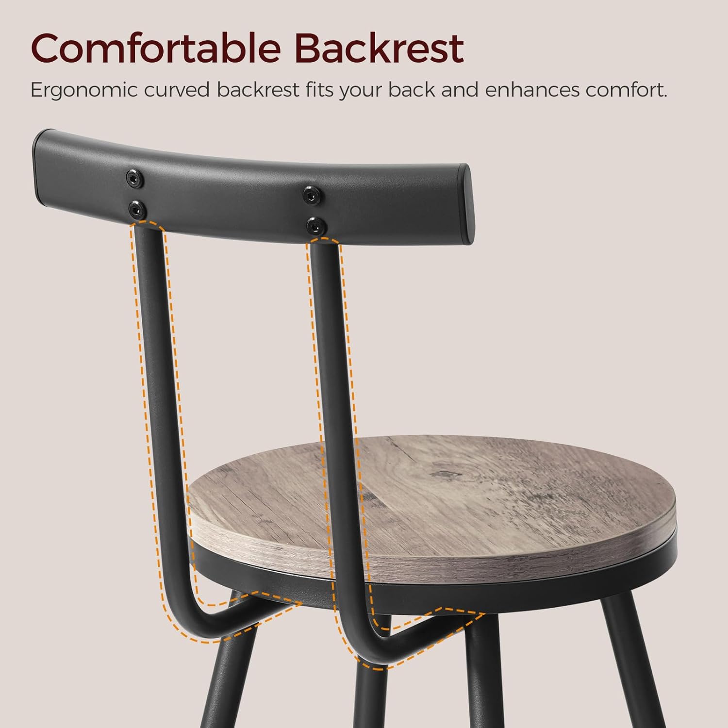 - Ergonomic Curved Backrest: The Bar Chair set features ergonomically curved backrest, providing precise lumbar support to ease long sitting fatigue. Combined with a smooth seat, it gives you a relaxing break from a busy day