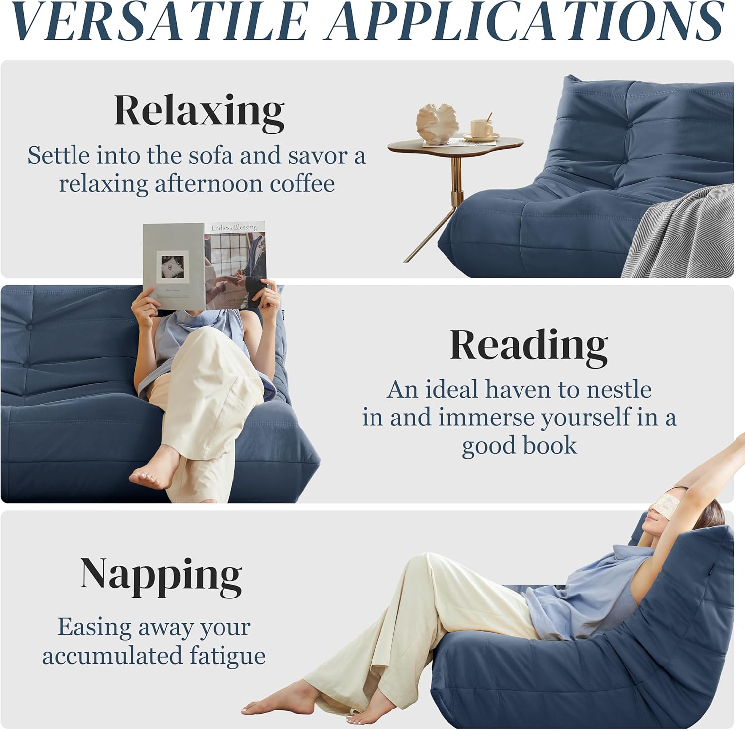 - 【Luxurious High-Resilience Foam Filling】 Filled with premium slow-rebound sponge, this bean bag couch delivers cloud-like comfort without sagging. Ideal for movie nights or gaming marathons – stays supportive even after 8+ hours of use.