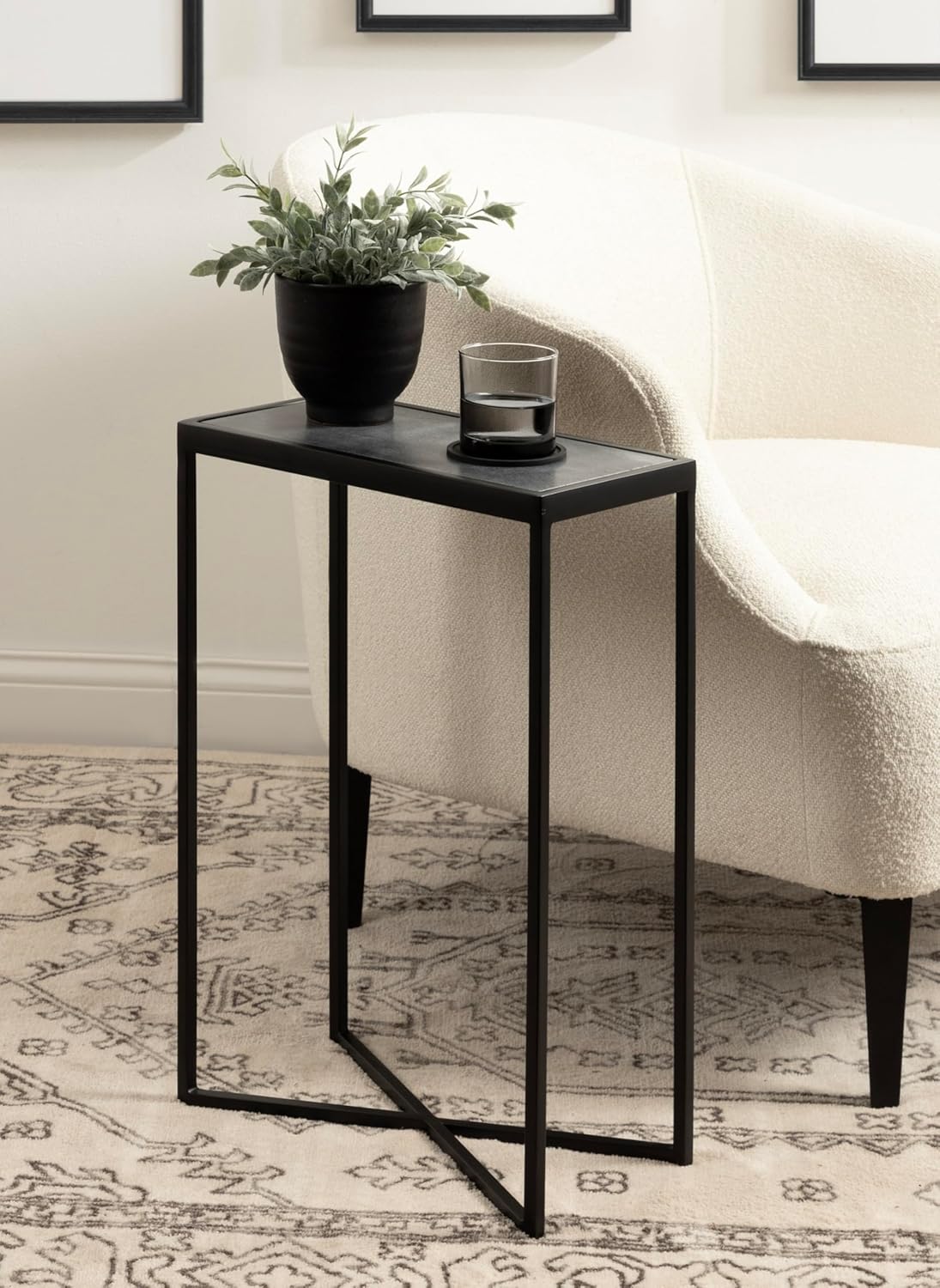 - Multifunctional End Table: Use this slim side table as a decorative display for small accents or as a storage surface for household necessities