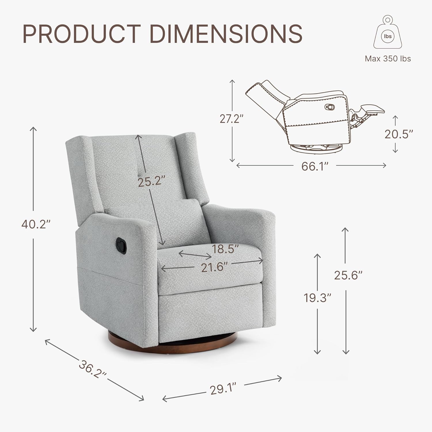 - 【QUALITY WOODEN BASE】The manual recliner has a 360-degree wood swivel base, is crafted of durable birchwood and quality metal(OKIN), designed to last for years of use, allows for a smooth and gentle swivel motion and gliding. You can be comfortable as you feed or rock your baby to sleep,cuddle up, recline, and get cozy.