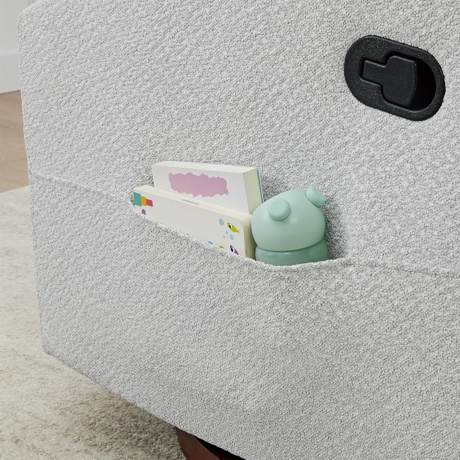 Upholstered Recliner Swivel Glider Nursery Chair Reclining Performance Fabric Rocker with Wood Base,Boucle,Grey