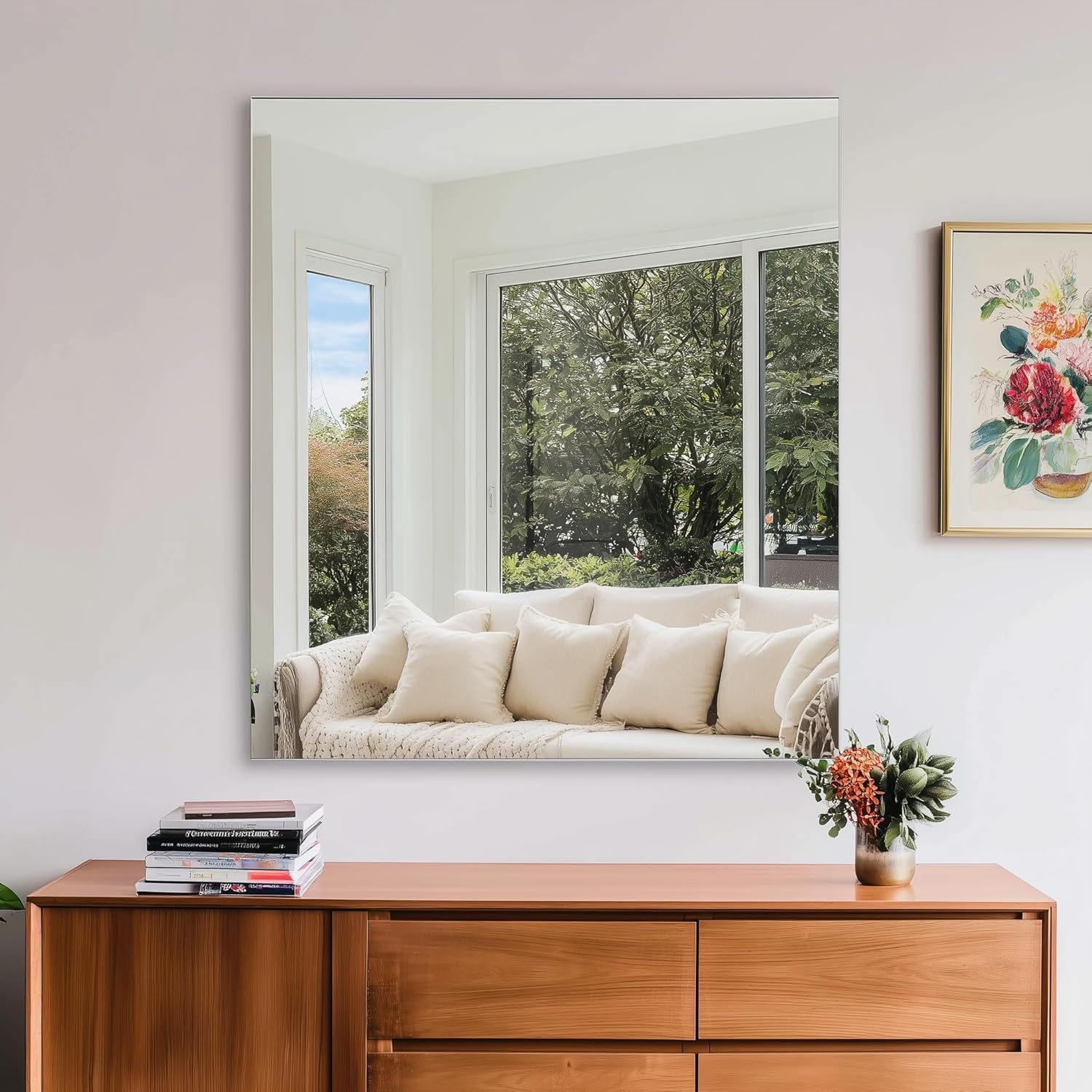 - HD 1:1 Reflection:KOCUUY frameless wall mirror offers a high-definition reflection. The premium mirror backing ensures a 1:1 real reflection with no distortion, giving you an clear and bright visual experience. This unframed mirrors are not only rust-resistant but also promise durability, making them ideal for high-humidity bathroom conditions.