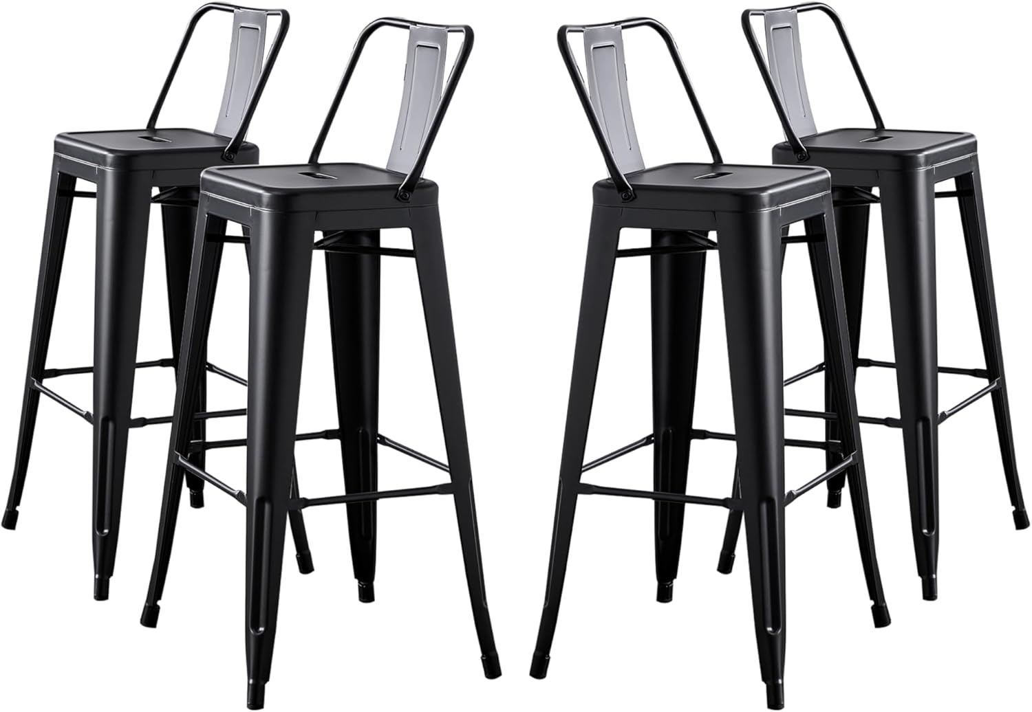 AC Pacific 30” Metal Barstool Set of 4 – Country Rustic Style with Low Back, Lightweight & Sturdy Build, Easy Assembly – Matte Black
