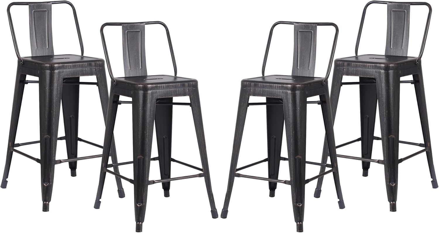 AC Pacific 24” Metal Barstool Set of 4 – Country Rustic Style with Low Back, Lightweight & Sturdy Build, Easy Assembly – Distressed Black