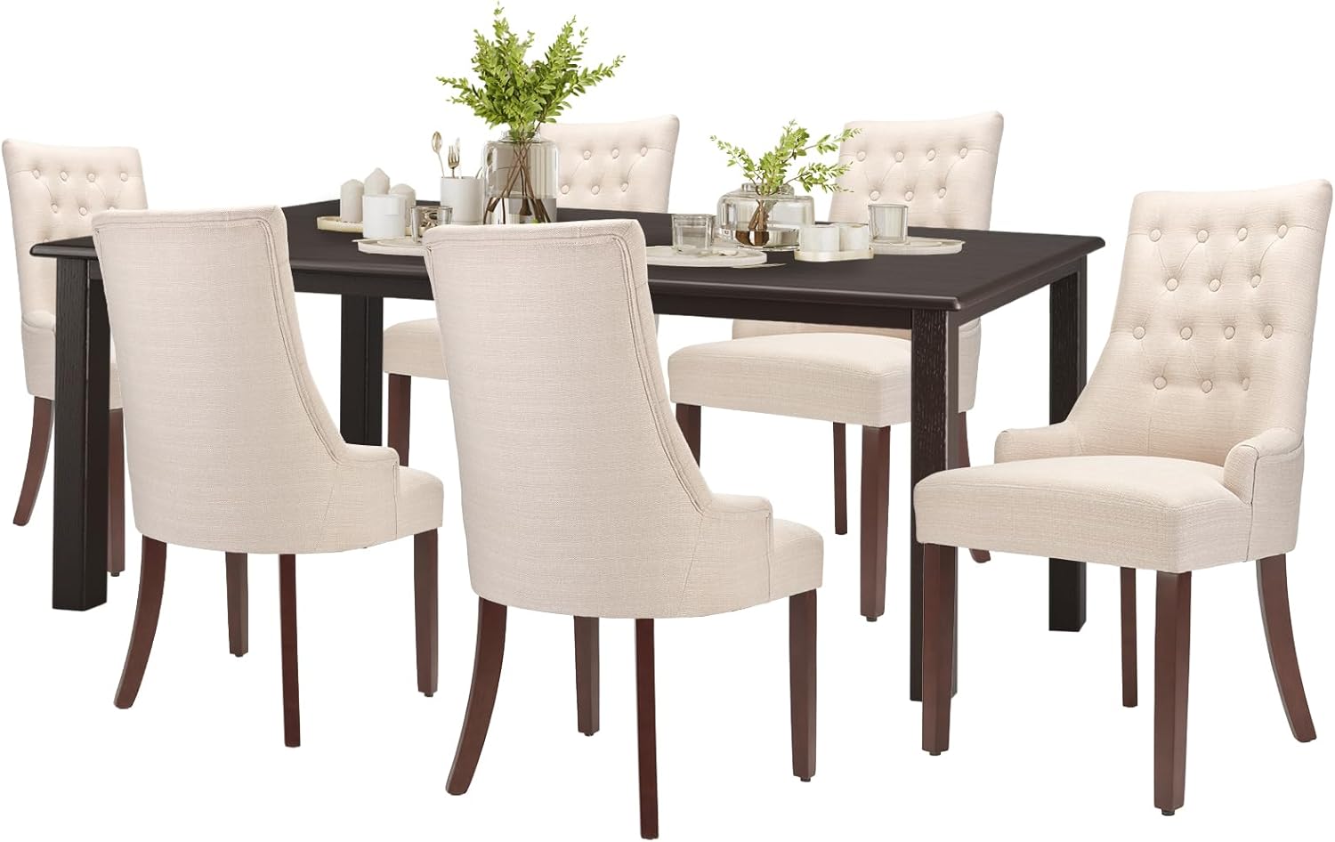 COLAMY 7-Piece Dining Table Set for 6, 60" Rectangular Kitchen Wood Table with 6 Wingback Dining Room Chairs, Brown/Beige