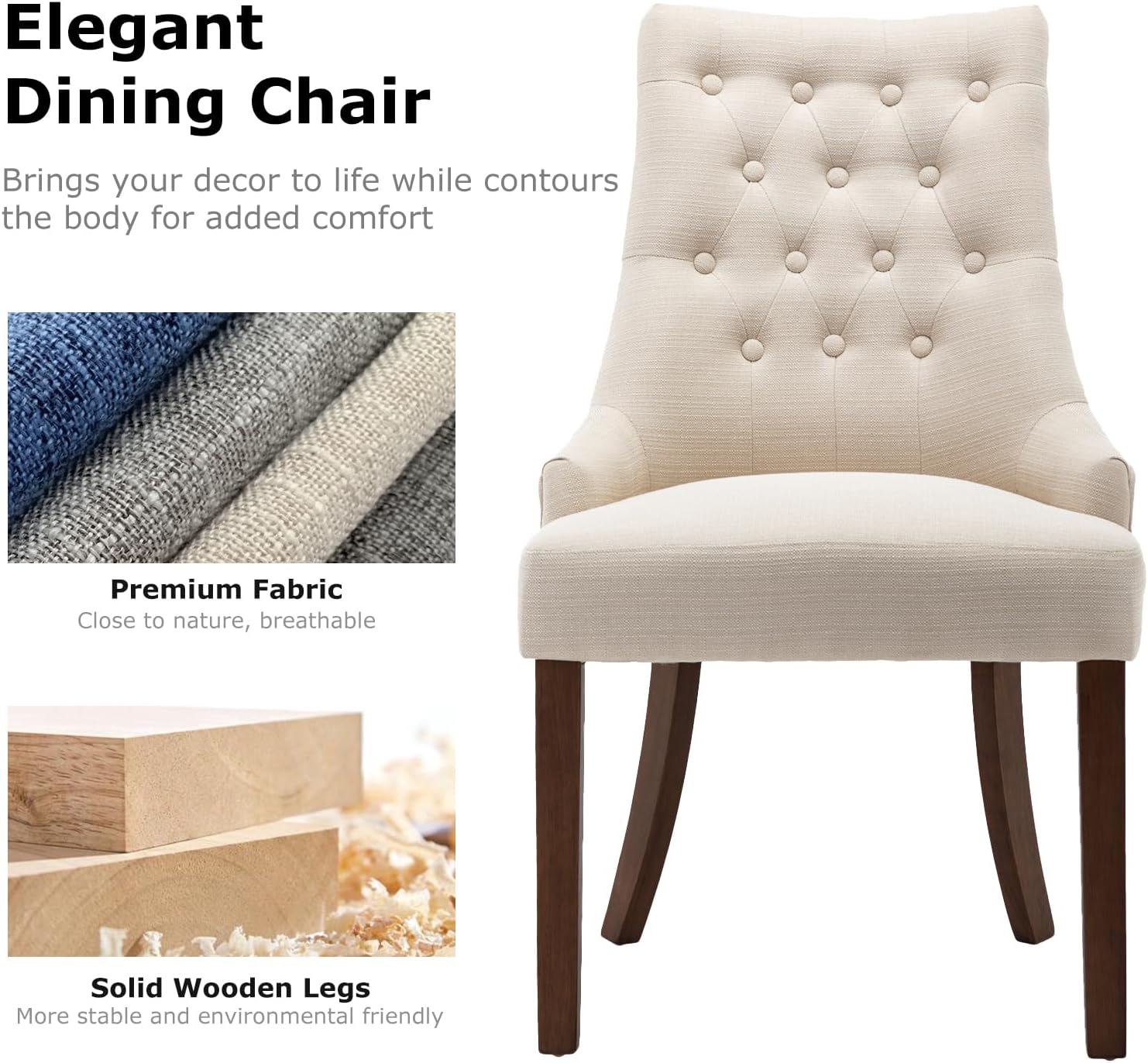 - 【Robust Design】Built to last, our wingback dining chairs can support up to 300lbs, featuring a sturdy wood frame for everyday use