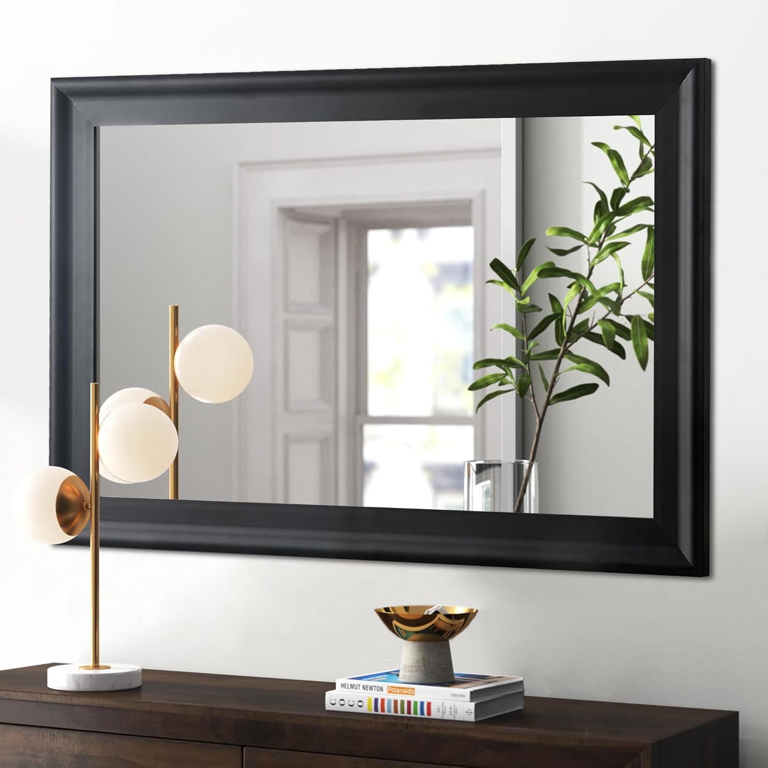 CULER Black Wood Wall Mirror for Bathroom,Rectangle Large 30 x 40 inch Hanging Vatiny Black Mirrors with Wooden Frame for Living Room,Bedroom,Entryway