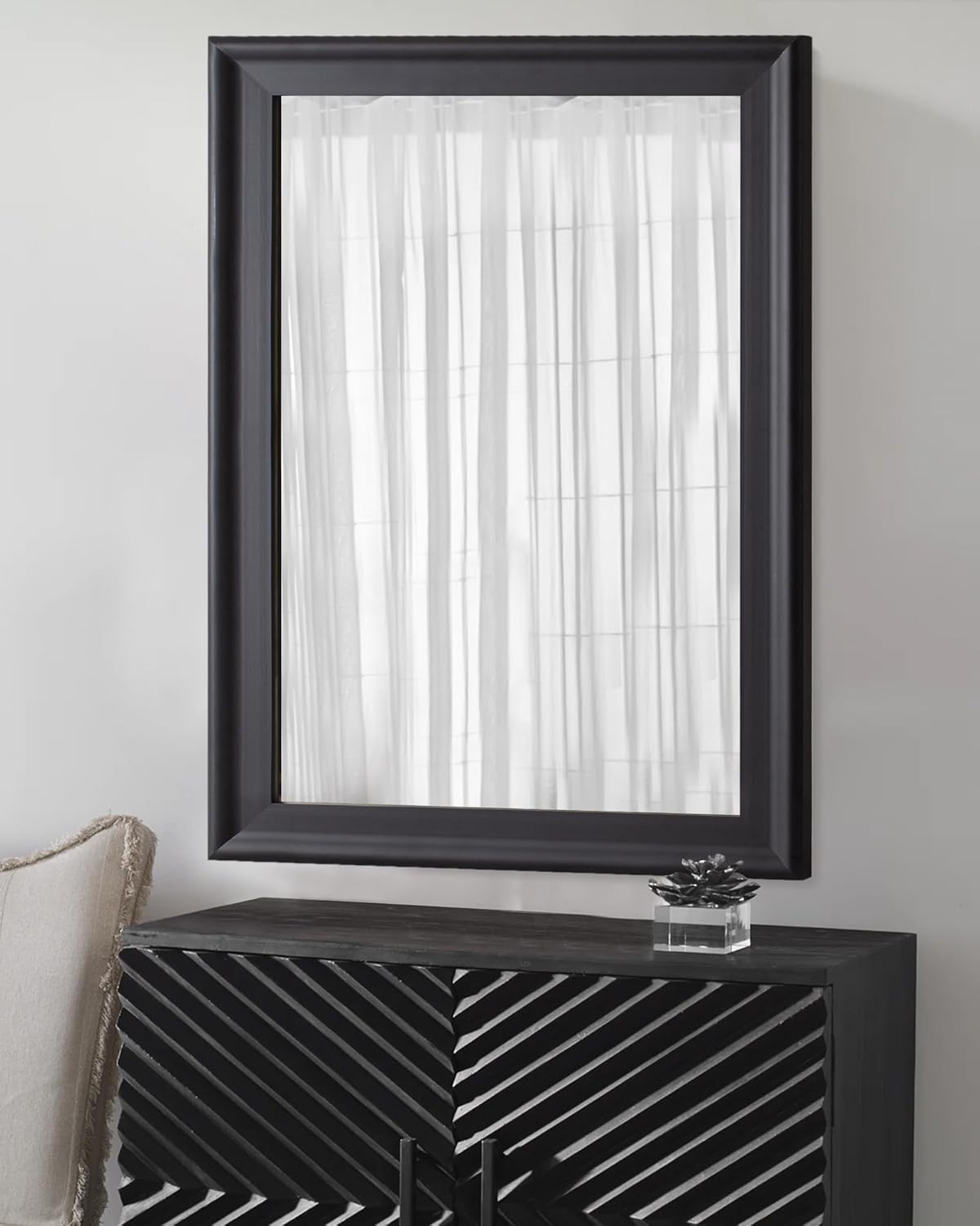 - [Easy To Install]This wall decor mirror comes ready to hang vertically or horizontally with pre-installed hooks.It can be safe and simple to hang for bathroom,living room or bedroom.The mirror dimension is 30 x 40 inches,All the mirrors are customized thick packaging and pass the drop test to ensure the safety of mirror transport.