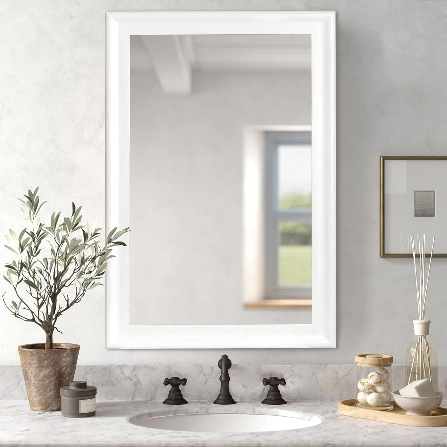 CULER White Wood Wall Mirror for Bathroom,Rectangle 20 x 30 inch Hanging Vatiny Mirrors with Wooden Frame for Living Room,Bedroom,Entryway