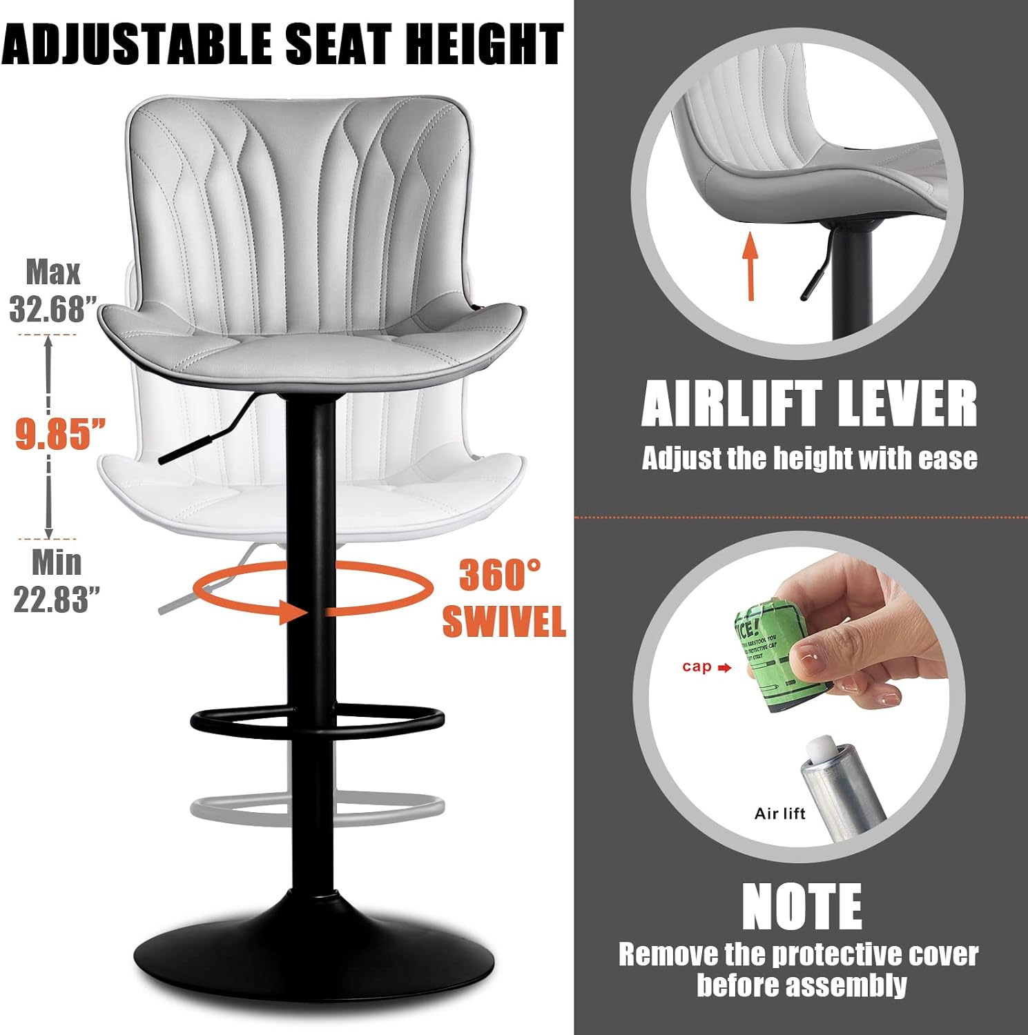 - 【Adjustable Height & 360˚ Swivel】The barstool can be simply adjusted in height from 22.83'' to 32.68" by lifting the lever under the seat to match different counter heights. The 360-degree swivel seat of the counter stools allow you to chat with your friends more freely.