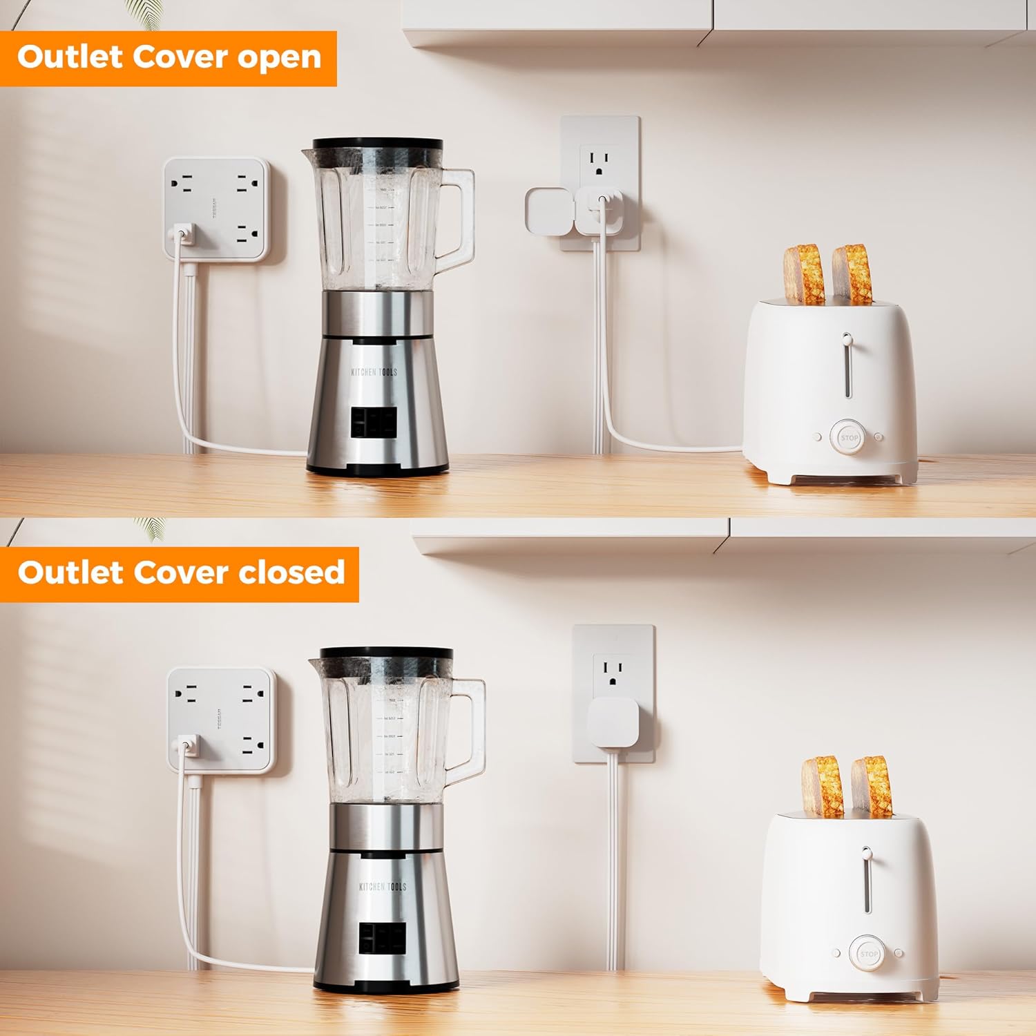 - Outlet Cover Extension Cord: An extra AC outlet with plug cover saving space and making it sleek and neat; The design of power strip allows family to charge devices simultaneously in various spots, While sharing 1250W Max with other outlets