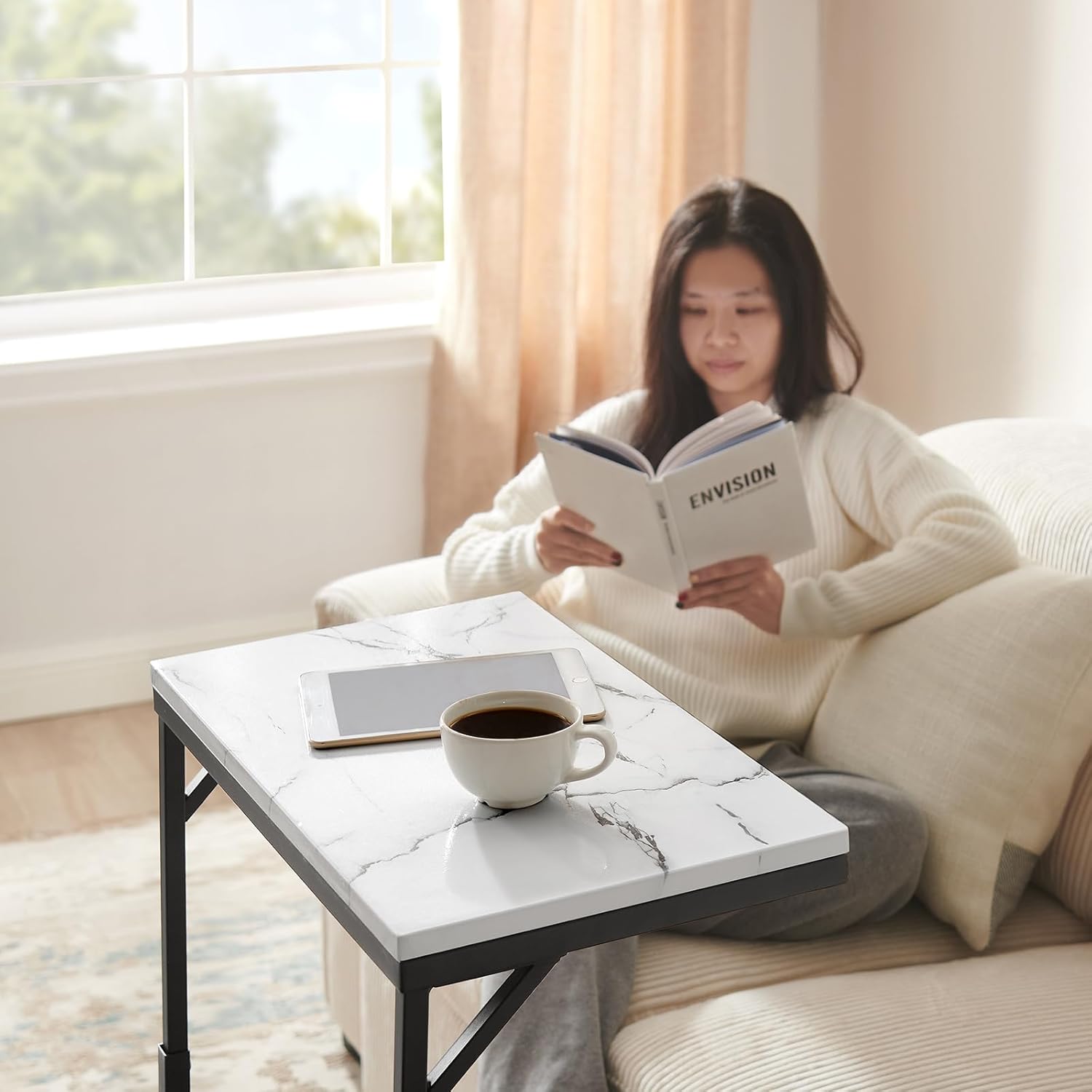 - Three Adjustable Heights: This C-shaped side table offers three height options, allowing you to customize it for different uses such as a sofa end table, laptop table for chair, or a convenient snack tray for your couch
