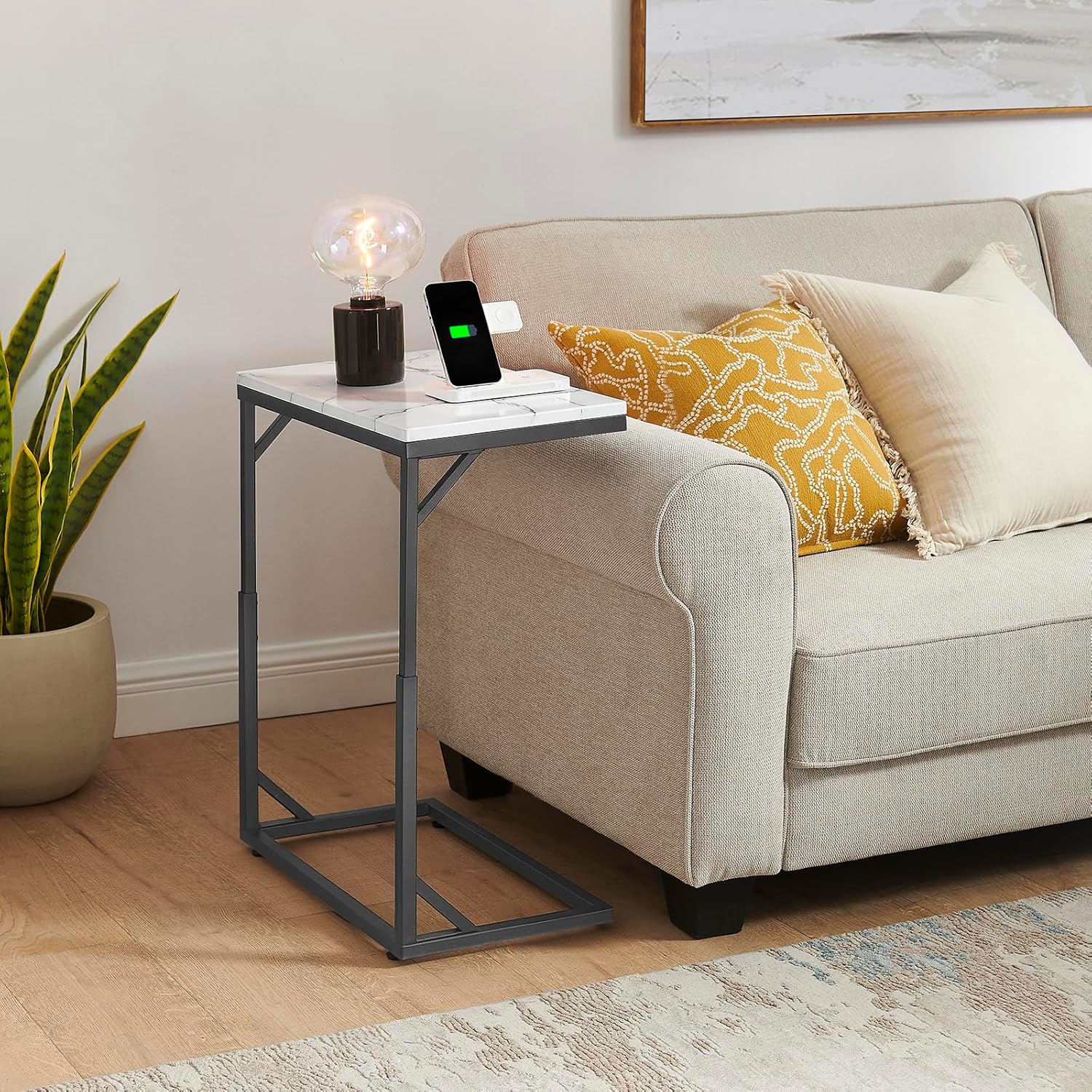 - Space-Saving Design: This C-shaped end table fits seamlessly under your couch, making it a perfect solution for small spaces like apartments or compact living rooms, offering functionality without crowding your area