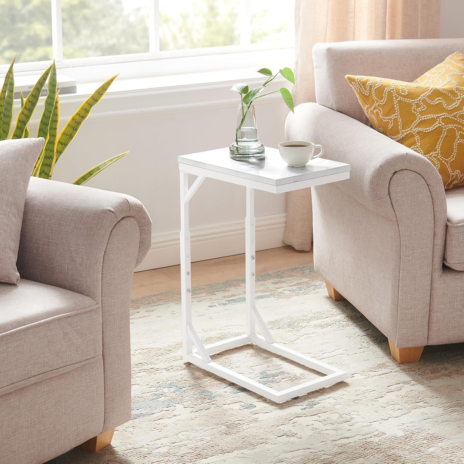 C-Shaped End Table, Small Sofa Table with Metal Frame, Adjustable Height Side Table for Couch, Living Room, Bedroom, Bedside (White, Small)