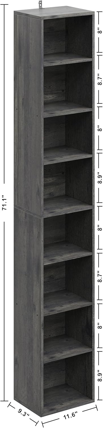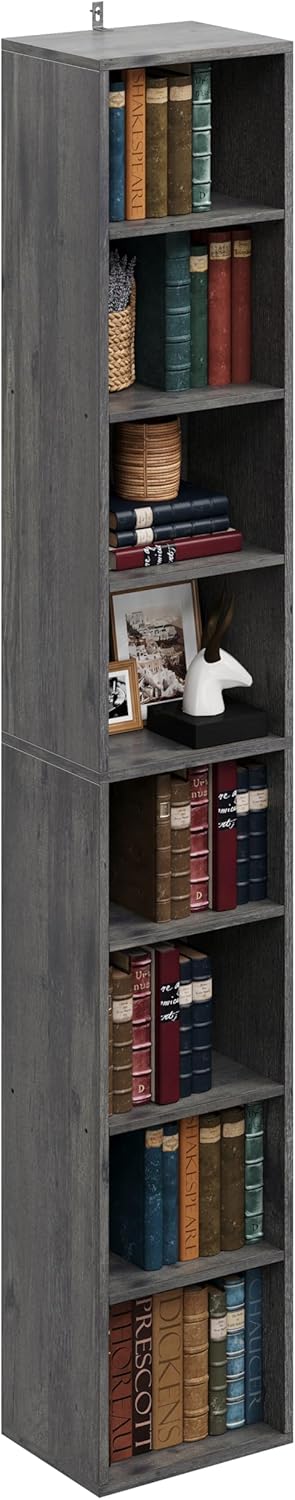 IRONCK Tall Narrow Bookshelf 8 Tiers, Compact Corner Bookcase, Easy to Match for Living Room, Office, Study, Bedroom
