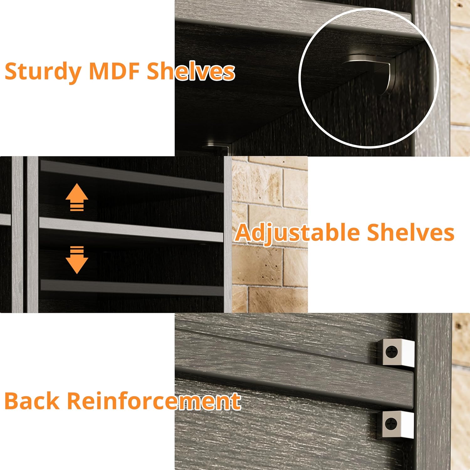 - Safety and Durability Design: Made of MDF for stability and a maximum weight capacity of thirty lbs per shelf. Includes anti-tip kit for securing the bookshelf to the wall and preventing tipping accidents
