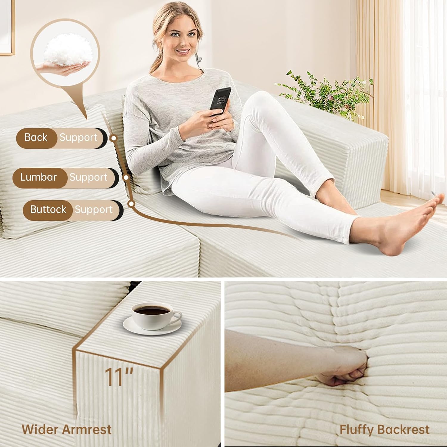 ANONER 103" Cloud Sectional Couch with Deep Seat, Modern Modular Boneless Couch L-Shape Upholstered Sofa with Chaise, Free Combination Corduroy Couches for Living Room, Beige