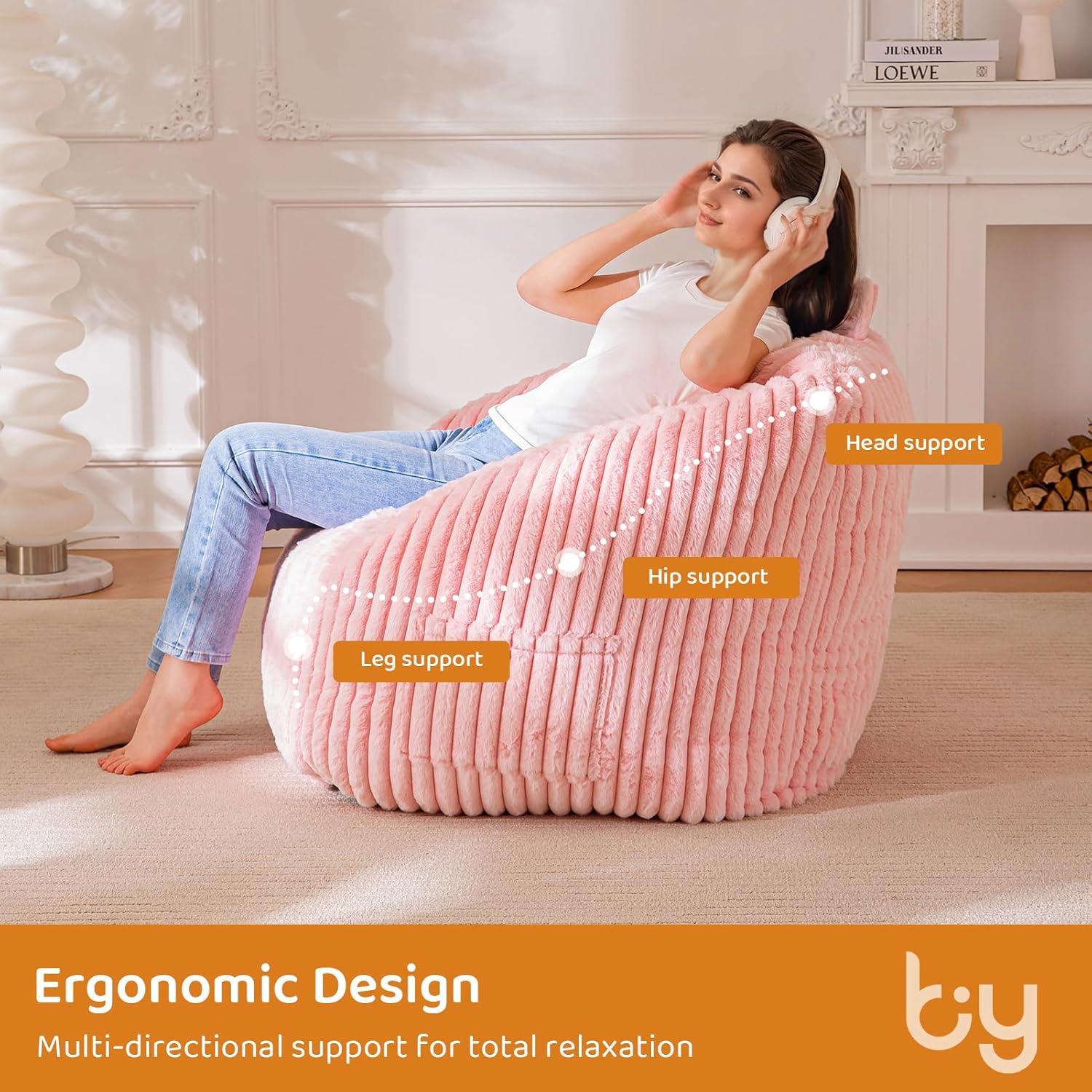 BYBYME Giant Bean Bag Chair for Adults and Kids, Large Comfy Cozy Beanbag, Floor Sofa for Teens, Living Room, Gaming, Reading, Pink