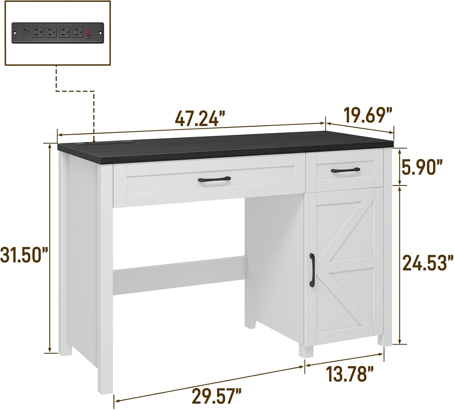 - 【Convenient Charging Hub】Our desk features a convenient charging station with 4 outlets and 2 USB ports, capable of powering up to 6 devices simultaneously. The included on-off switch ensures safe electricity usage and offers a one-button power-off function for added security. Perfect for charging cell phones, tablets, laptops, and other electronic devices, this charging hub keeps your workspace tidy and organized.